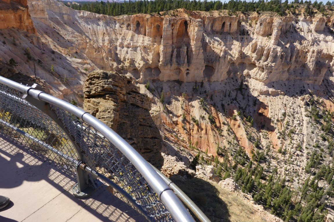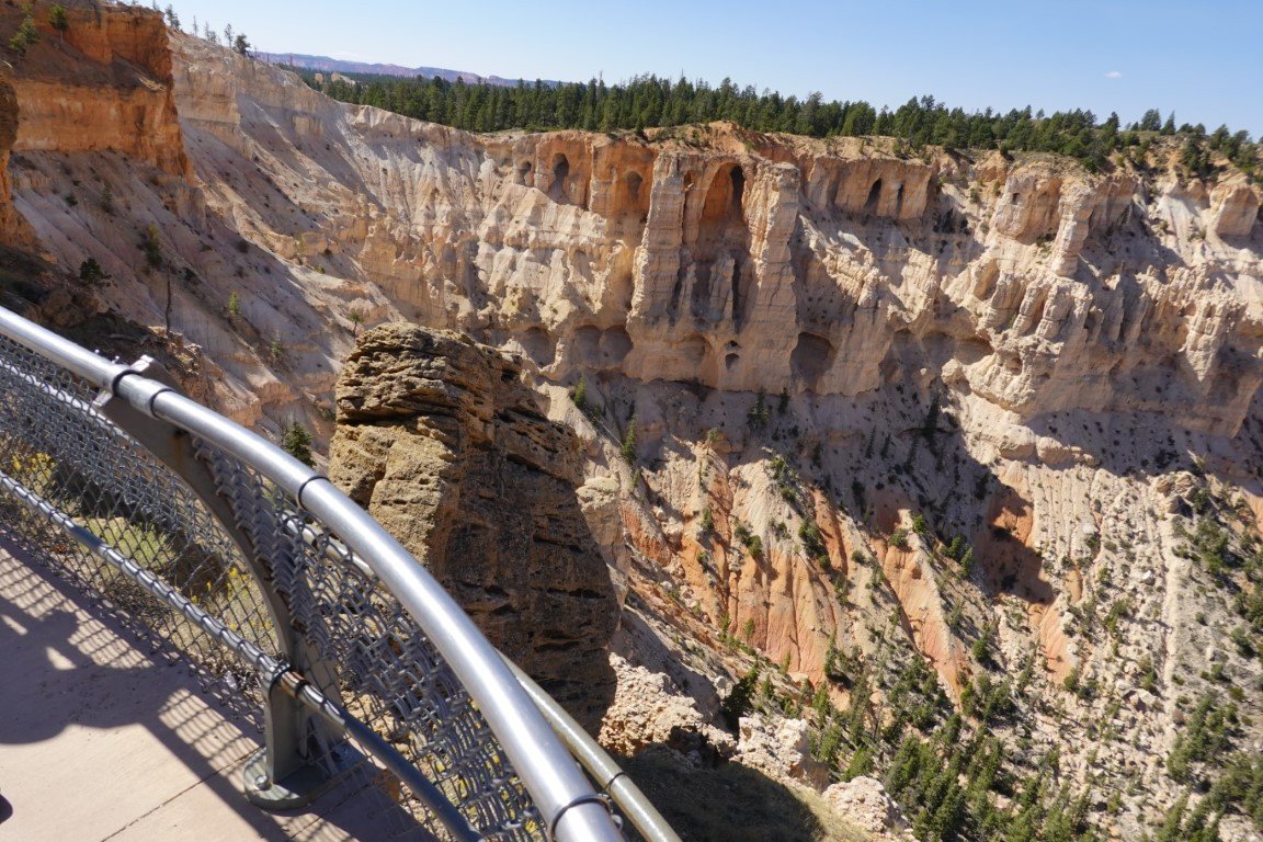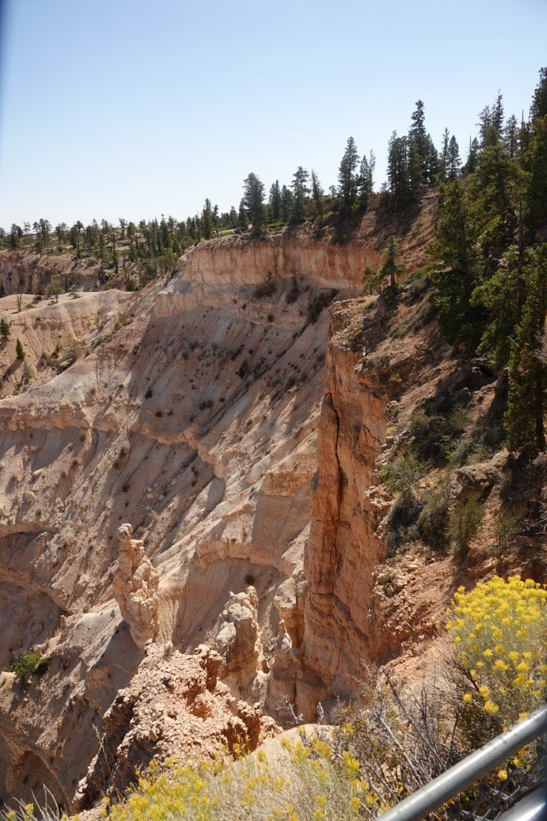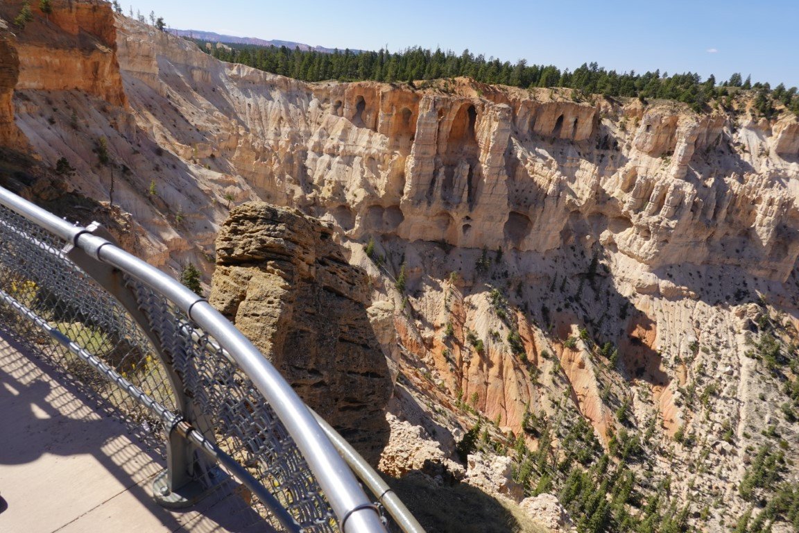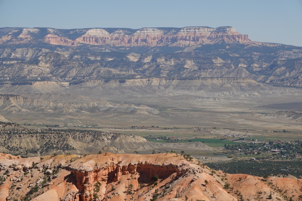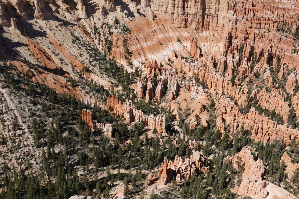 Bryce Canyon National Park (/braɪs/) is a national park of the United States located in southwestern Utah. The major feature of the park is Bryce Canyon, which despite its name, is not a canyon, but a collection of giant natural amphitheaters along the eastern side of the Paunsaugunt Plateau. Bryce is distinctive due to geological structures called hoodoos, formed by frost weathering and stream erosion of the river and lake bed sedimentary rock. The red, orange, and white colors of the rocks provide spectacular views for park visitors. Bryce Canyon National Park is much smaller and sits at a much higher elevation than nearby Zion National Park. The rim at Bryce varies from 8,000 to 9,000 feet (2,400 to 2,700 m). The area is in portions of Garfield County[3] and Kane County.[4] The Bryce Canyon area was settled by Mormon pioneers in the 1850s and was named after Ebenezer Bryce, who homesteaded in the area in 1874.[5] The area was originally designated as a national monument by President Warren G. Harding in 1923 and was redesignated as a national park by Congress in 1928. The park covers 35,835 acres (55.992 sq mi; 14,502 ha; 145.02 km2)[1] and receives substantially fewer visitors than Zion National Park (nearly 4.3 million in 2016) or Grand Canyon National Park (almost 6 million in 2016), largely due to Bryce's more remote location. In 2023, Bryce Canyon received 2,461,269