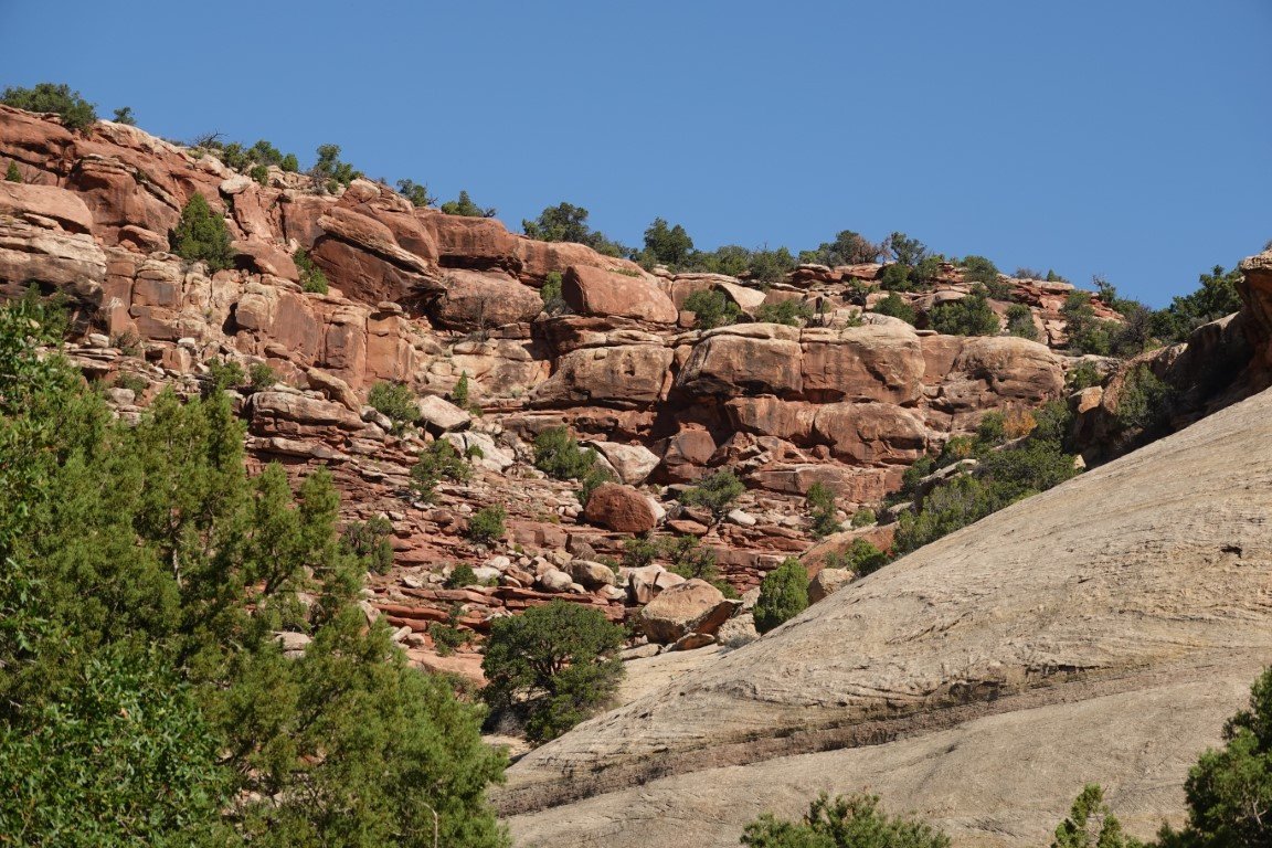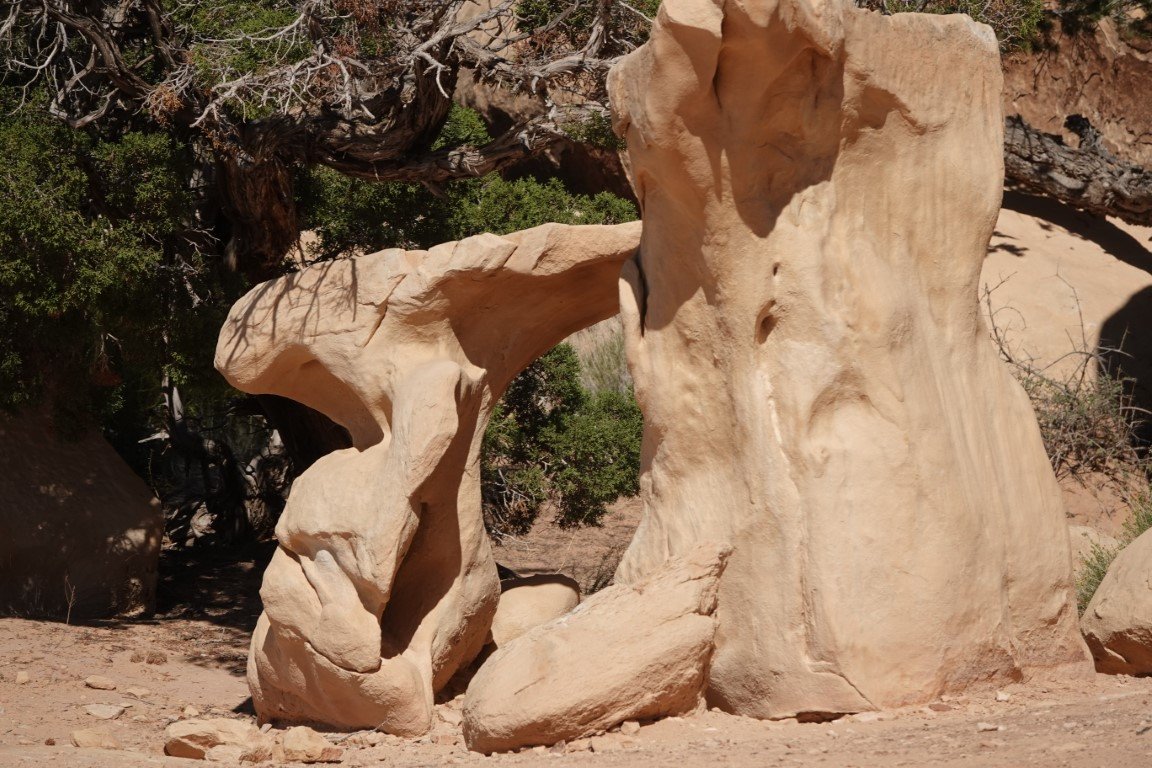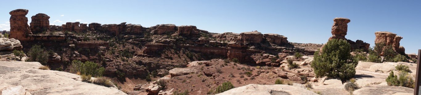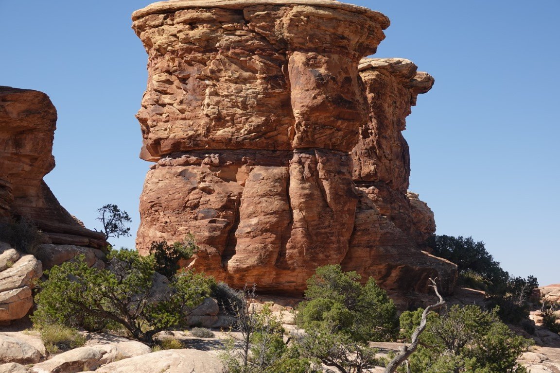 The Needles forms the southeast corner of Canyonlands and was named for the colorful spires of Cedar Mesa Sandstone that dominate the area. The Needles are tower-like hills of Cedar Mesa sandstone cut down and carved by the Green and Colorado Rivers over 20 million years ago. Water erosion caused by the flowing streams and heavy rains slowly shaped the geological features we admire today.