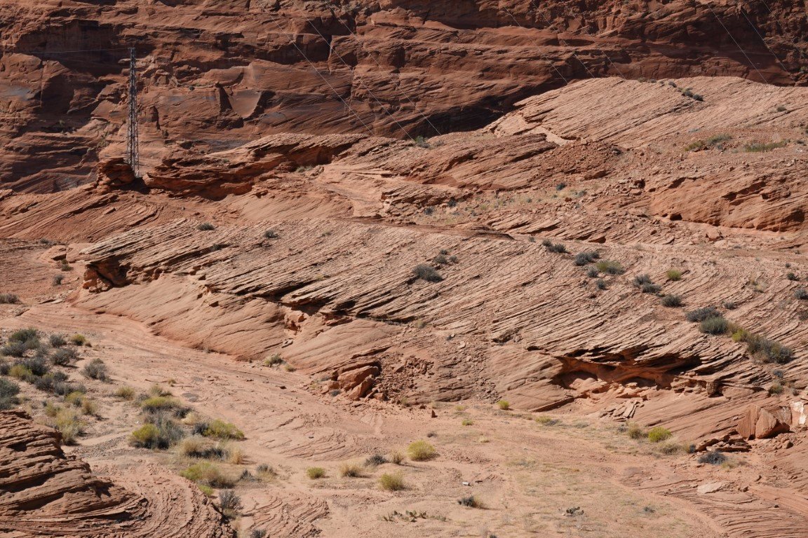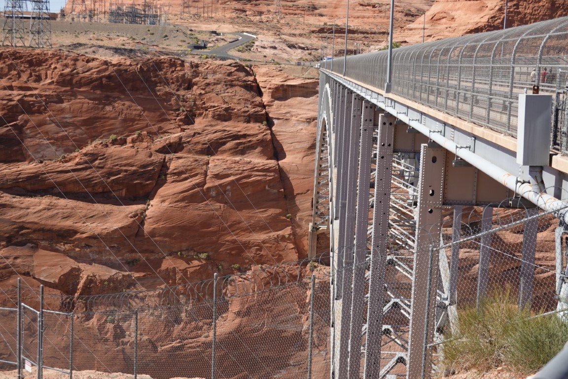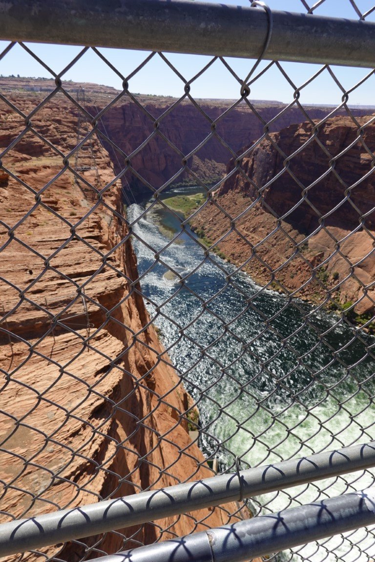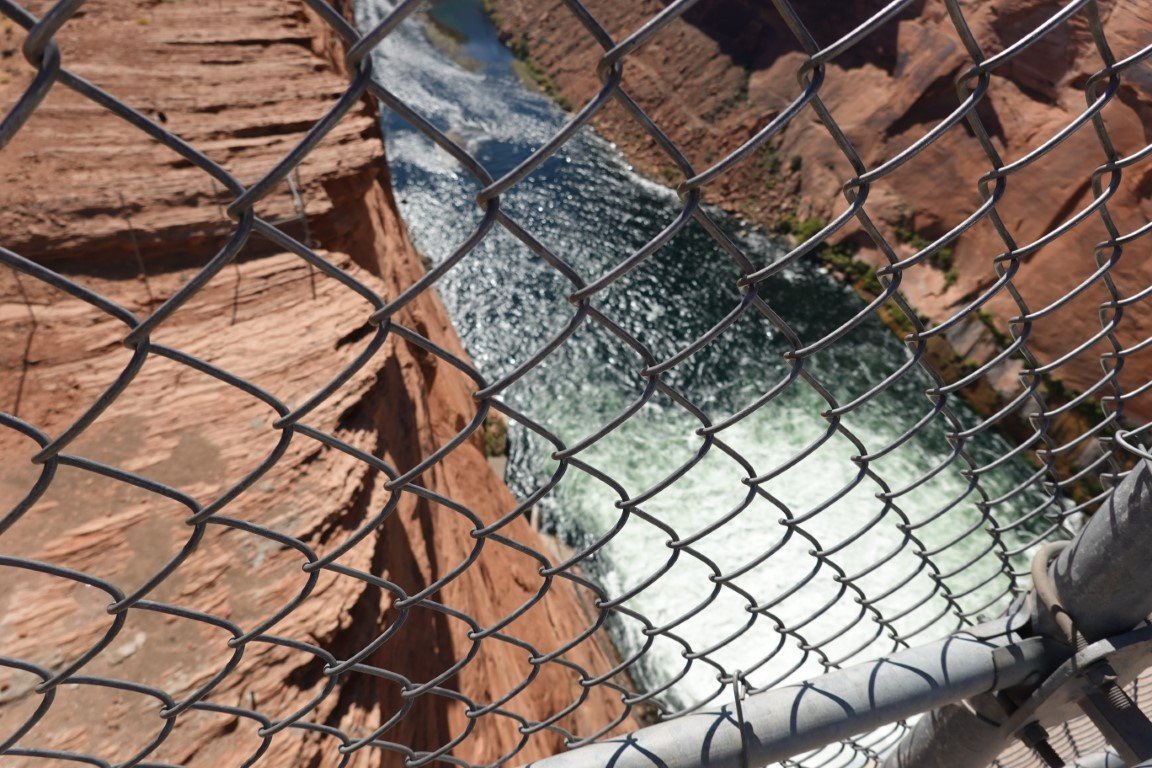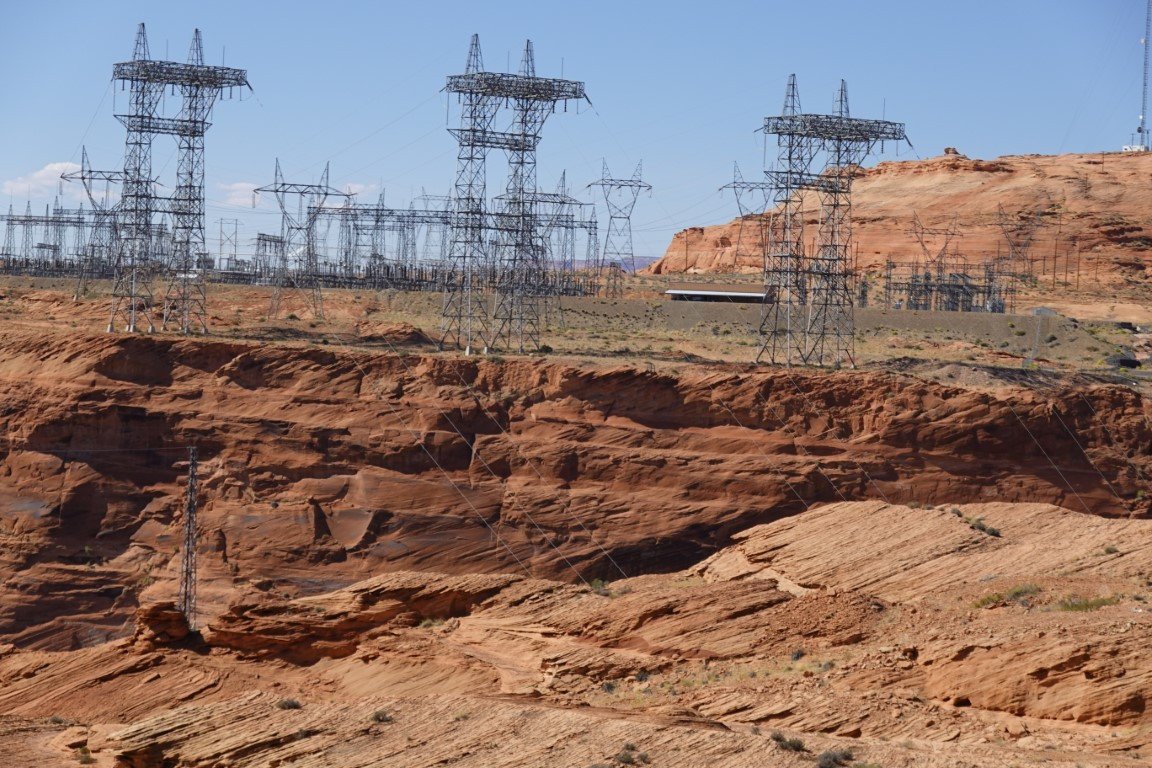 Glen Canyon Dam is a concrete arch-gravity dam in the southwestern United States, located on the Colorado River in northern Arizona, near the city of Page. The 710-foot-high (220 m) dam was built by the Bureau of Reclamation (USBR) from 1956 to 1966 and forms Lake Powell, one of the largest man-made reservoirs in the U.S. with a capacity of more than 25 million acre-feet (31 km3).[4] The dam is named for Glen Canyon, a series of deep sandstone gorges now flooded by the reservoir; Lake Powell is named for John Wesley Powell, who in 1869 led the first expedition to traverse the Colorado River's Grand Canyon by boat. A dam in Glen Canyon was studied as early as 1924, but these plans were initially dropped in favor of the Hoover Dam (completed in 1936) which was located in the Black Canyon. By the 1950s, due to rapid population growth in the seven U.S. and two Mexican states comprising the Colorado River Basin, the Bureau of Reclamation deemed the construction of additional reservoirs necessary.[8] The Glen Canyon Dam remains a central issue for modern environmentalist movements. Beginning in the late 1990s, the Sierra Club and other organizations renewed the call to dismantle the dam and drain Lake Powell in Lower Glen Canyon. Glen Canyon and Lake Powell are managed by the Department of the Interior within Glen Canyon National Recreation Area. Since first filling to capacity in 1980, Lake Powell water levels have fluctuated greatly depending on water demand and annual runoff. The operation of Glen Canyon Dam helps ensure an equitable distribution of water between the states of the Upper Colorado River Basin (Colorado, Wyoming, and most of New Mexico and Utah) and the Lower Basin (California, Nevada and most of Arizona).[8] During years of drought, Glen Canyon guarantees a water delivery to the Lower Basin states, without the need for rationing in the Upper Basin. In wet years, it captures extra runoff for future use.[8] The dam is also a major source of hydroelectricity, averaging over 4 billion kilowatt hours per year.[7] The long and winding Lake Powell, known for its scenic beauty and recreational opportunities including houseboating, fishing and water skiing, attracts millions of tourists each year to the Glen Canyon National Recreation Area.[9] In addition to its flooding of the scenic Glen Canyon, the dam's economic justification was questioned by some critics.[10] It became "a catalyst for the modern environmental movement,"[11] and was one of the last dams of its size to be built in the United States.[12] The dam has been criticized for the large evaporative losses from Lake Powell and its impact on the ecology of the Grand Canyon, which lies downstream; environmental groups continue to advocate for the dam's removal. Water managers and utilities state that the dam is a major source of renewable energy and provides a buffer for severe droughts.