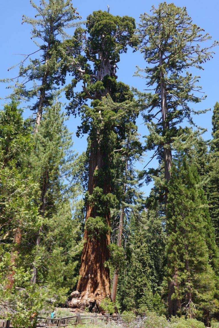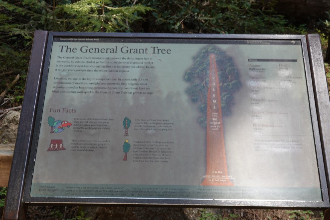 Kings Canyon National Park is a national park of the United States in the southern Sierra Nevada, in Fresno and Tulare Counties, California. Originally established in 1890 as General Grant National Park, the park was greatly expanded and renamed on March 4, 1940. The park's namesake, Kings Canyon, is a rugged glacier-carved valley more than a mile (1,600 m) deep. Other natural features include multiple 14,000-foot (4,300 m) peaks, high mountain meadows, swift-flowing rivers, and some of the world's largest stands of giant sequoia trees. Kings Canyon is north of and contiguous with Sequoia National Park, and both parks are jointly administered by the National Park Service as the Sequoia and Kings Canyon National Parks. The majority of the 461,901-acre (186,925 ha) park, drained by the Middle and South Forks of the Kings River and many smaller streams, is designated wilderness. Tourist facilities are concentrated in two areas: Grant Grove, home to General Grant (the second largest tree in the world, measured by trunk volume) and Cedar Grove, located in the heart of Kings Canyon. Overnight hiking is required to access most of the park's backcountry, or high country, which for much of the year is covered in deep snow. The combined Pacific Crest Trail/John Muir Trail, a backpacking route, traverses the entire length of the park from north to south.
