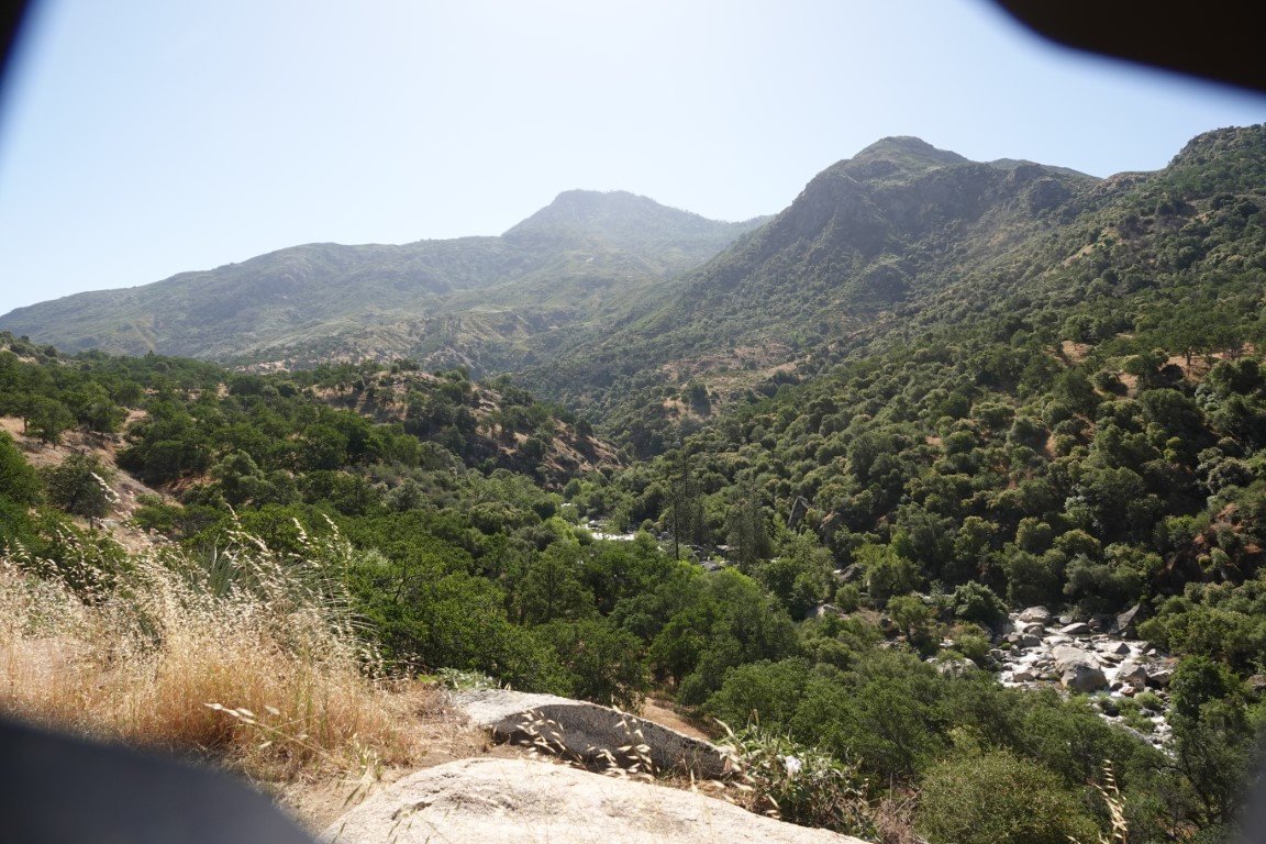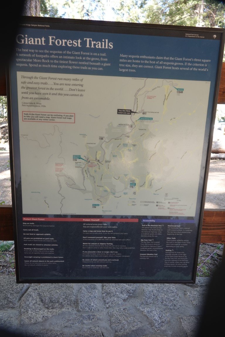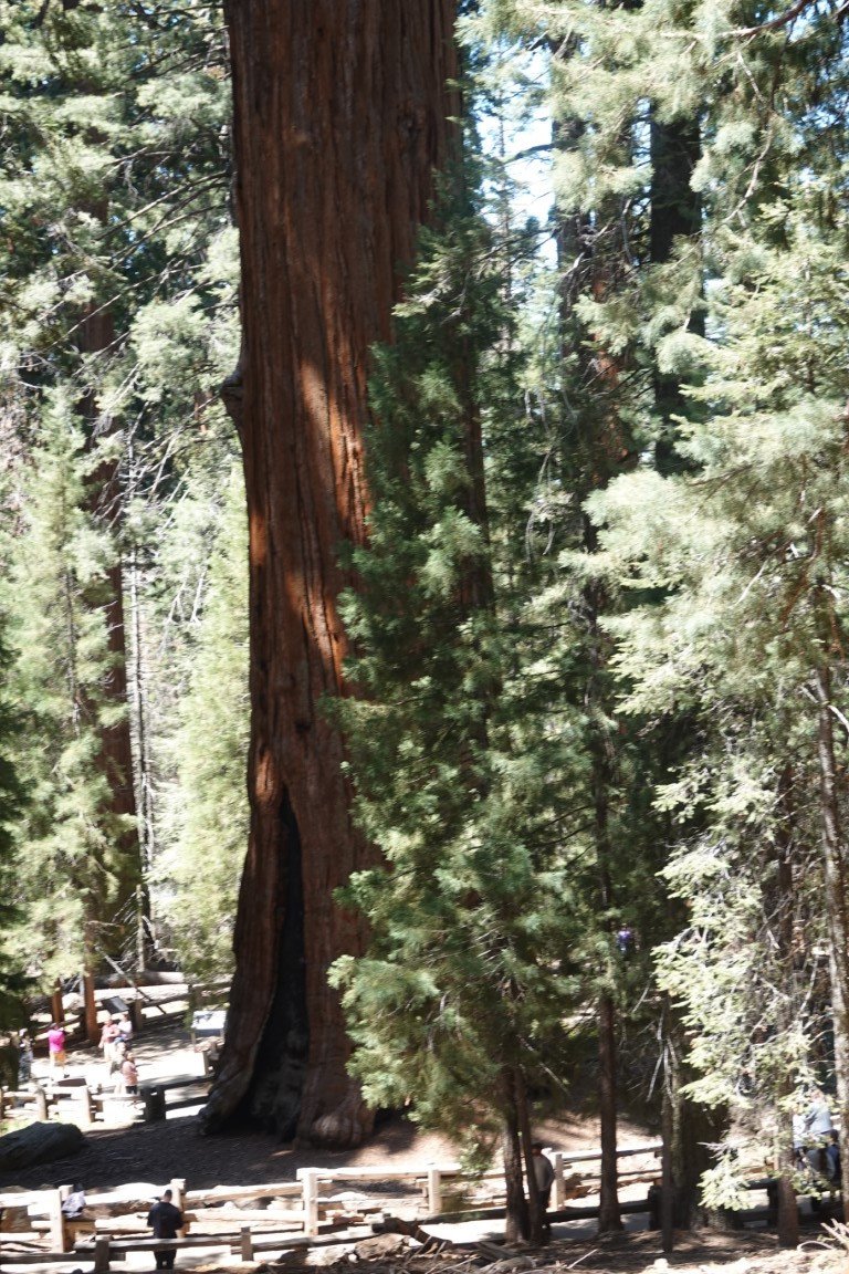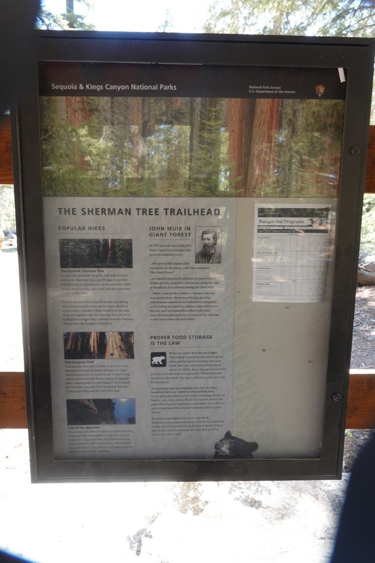 Kings Canyon National Park is a national park of the United States in the southern Sierra Nevada, in Fresno and Tulare Counties, California. Originally established in 1890 as General Grant National Park, the park was greatly expanded and renamed on March 4, 1940. The park's namesake, Kings Canyon, is a rugged glacier-carved valley more than a mile (1,600 m) deep. Other natural features include multiple 14,000-foot (4,300 m) peaks, high mountain meadows, swift-flowing rivers, and some of the world's largest stands of giant sequoia trees. Kings Canyon is north of and contiguous with Sequoia National Park, and both parks are jointly administered by the National Park Service as the Sequoia and Kings Canyon National Parks. The majority of the 461,901-acre (186,925 ha) park, drained by the Middle and South Forks of the Kings River and many smaller streams, is designated wilderness. Tourist facilities are concentrated in two areas: Grant Grove, home to General Grant (the second largest tree in the world, measured by trunk volume) and Cedar Grove, located in the heart of Kings Canyon. Overnight hiking is required to access most of the park's backcountry, or high country, which for much of the year is covered in deep snow. The combined Pacific Crest Trail/John Muir Trail, a backpacking route, traverses the entire length of the park from north to south.