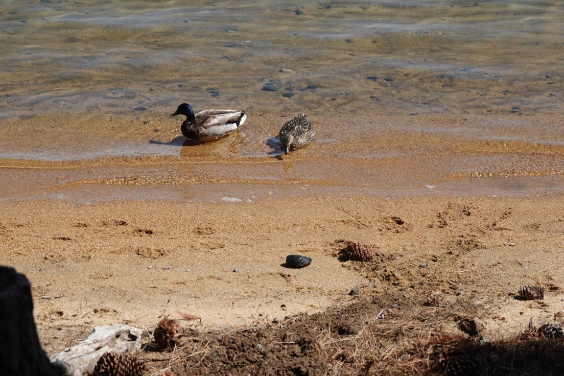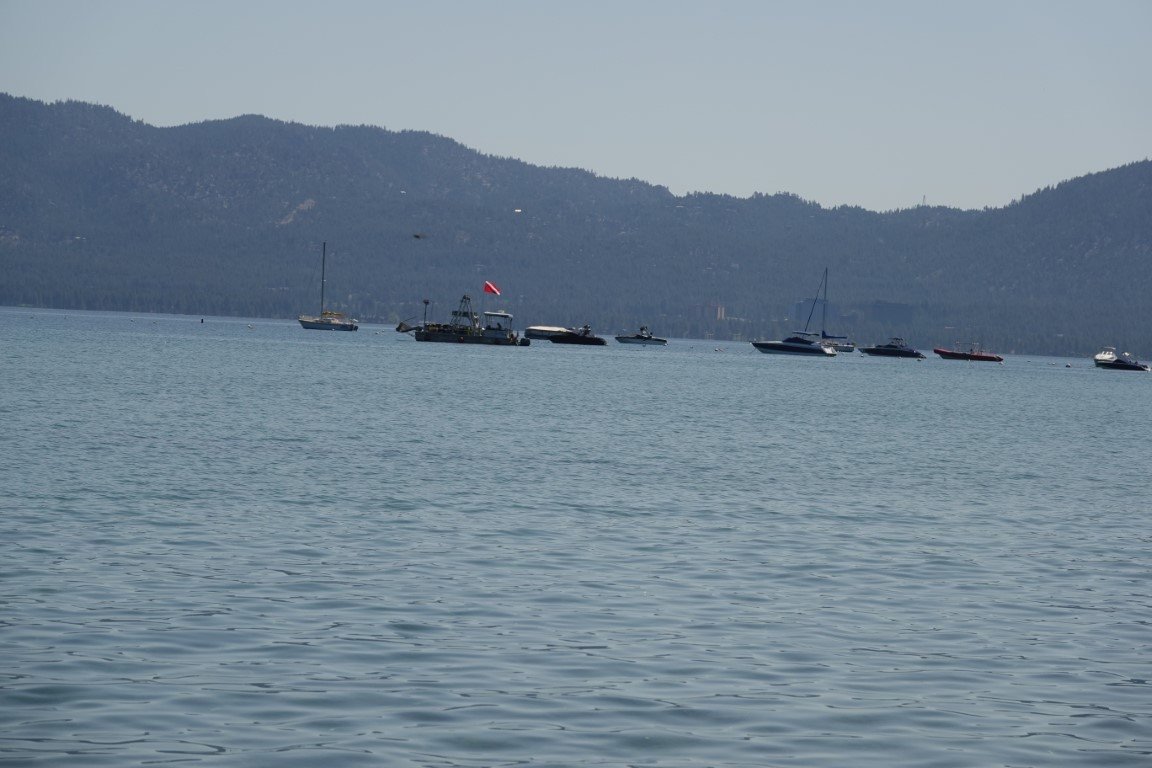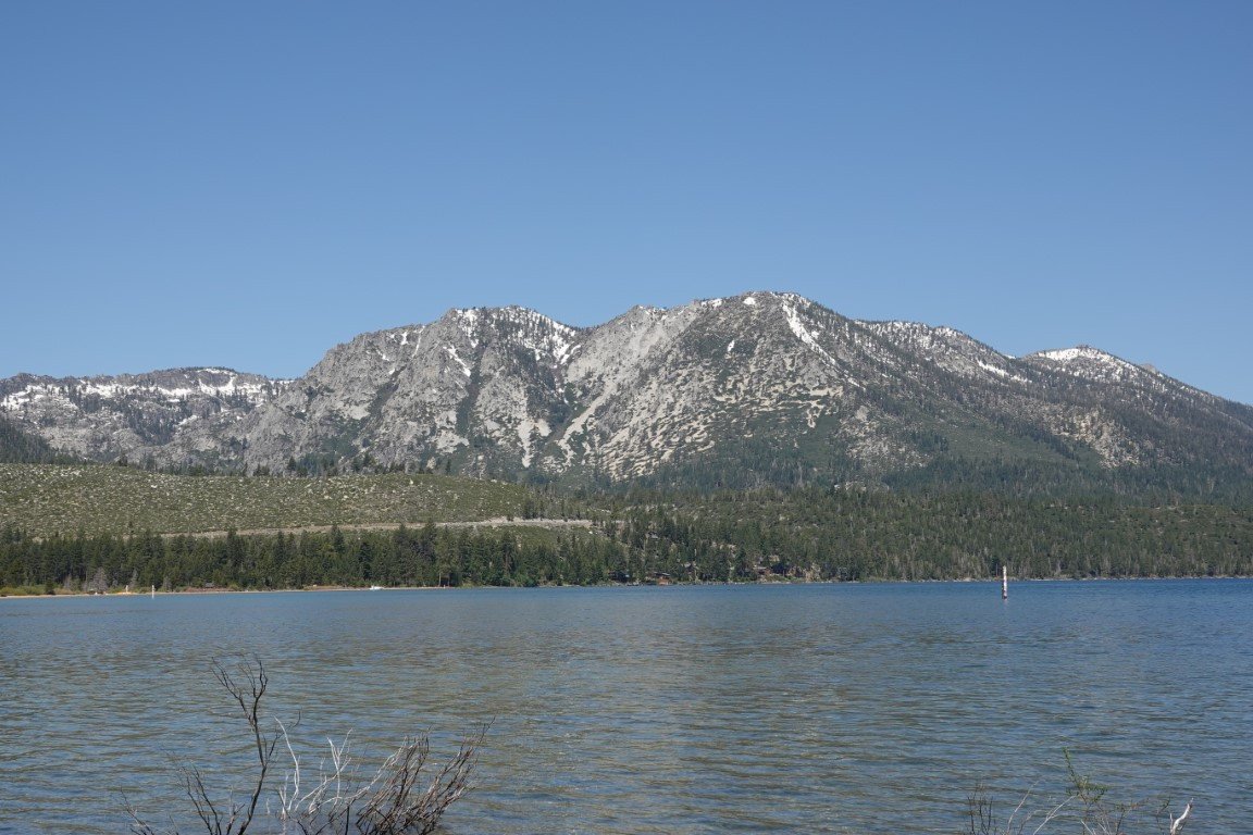 Lake Tahoe (/ˈtɑːhoʊ/; Washo: dáʔaw) is a freshwater lake in the Sierra Nevada of the Western United States, straddling the border between California and Nevada. Lying at 6,225 ft (1,897 m) above sea level, Lake Tahoe is the largest alpine lake in North America, and at 122,160,280 acre⋅ft (150.7 km3) it trails only the five Great Lakes as the largest by volume in the United States. Its depth is 1,645 ft (501 m), making it the second deepest in the United States after Crater Lake in Oregon (1,949 ft or 594 m). The lake was formed about two million years ago as part of the Lake Tahoe Basin, and its modern extent was shaped during the ice ages. It is known for the clarity of its water and the panorama of surrounding mountains on all sides. The area surrounding the lake is also referred to as Lake Tahoe, or simply Tahoe; its English name is derived from its Washo name, Dáʔaw. More than 75% of the lake's watershed is national forest land, covered by the Lake Tahoe Basin Management Unit of the United States Forest Service.