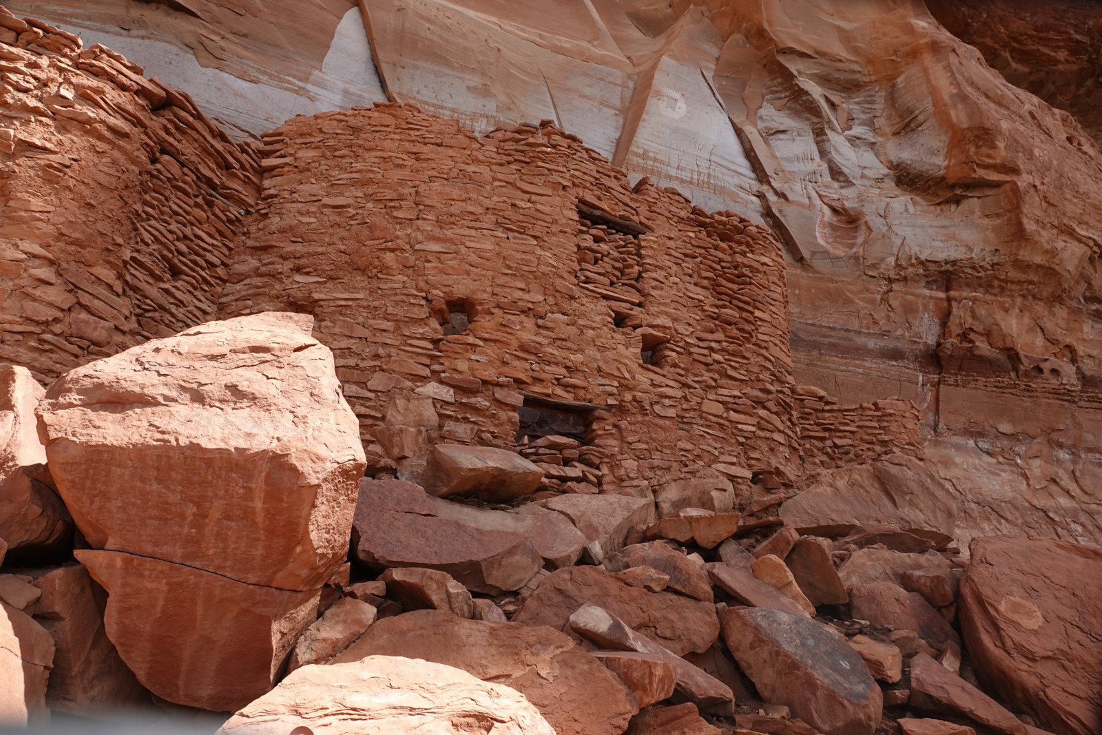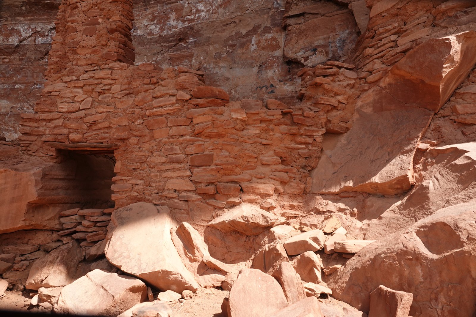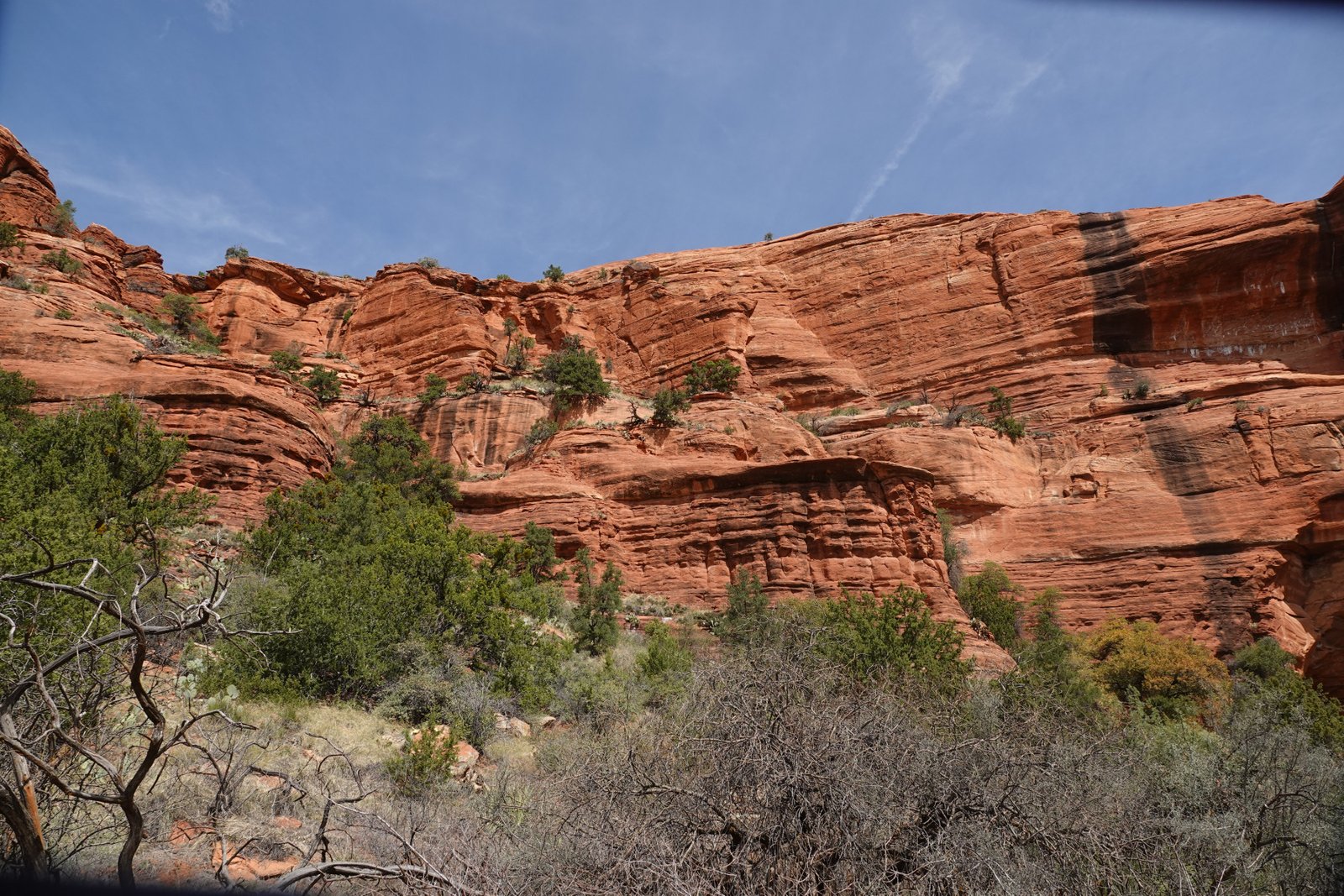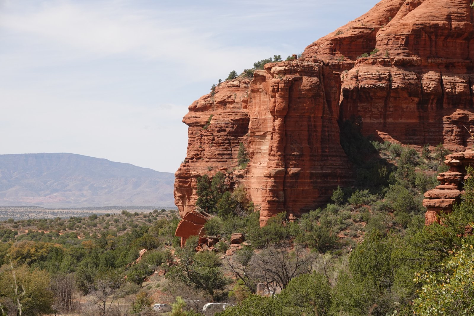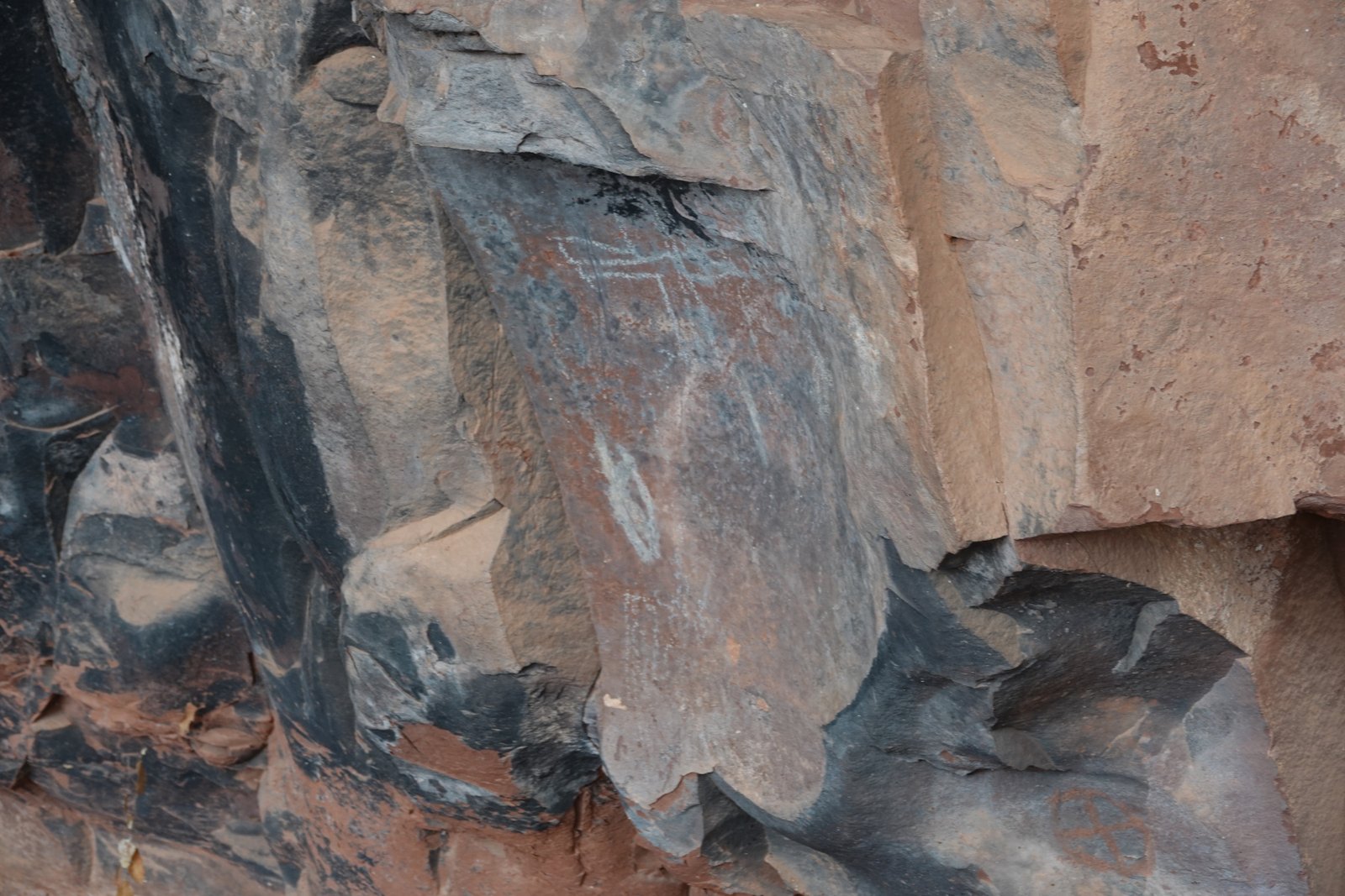 The Palatki Heritage Site is an archaeological site and park located in the Coconino National Forest, near Sedona, in Arizona, United States at approximately 34°54′56″N 111°54′08″W. In the Hopi language Palatki means 'red house'. Cliff dwellings The Palatki site has a set of ancient cliff dwellings in the red sandstone cliffs, built from 1100 to 1400 CE by the Sinagua people of the Ancestral Puebloans. The cliff dwellings were built under south-facing overhangs for shelter and winter sun. The Sinagua people planted crops and made pottery in the area.[1] Palatki and Honanki, another nearby archaeological site, had the largest cliff dwellings in the Red Rock formation area from 1150 to 1300 CE.[2] Palatki consists of two separate pueblos, suggesting two family or kin groups may have lived here, one in each pueblo. The circular shield-like pictographs above the eastern pueblo have been interpreted by some archaeologists as being a kin or clan symbol.[3] Rock art There are pictographs and petroglyphs at the Palatki site, including some that predate the cliff dwellings. Many of the pictographs on the rock walls are from the Sinagua. However, those created by peoples of the Archaic period in North America include some of the more abstract pictograph symbols and drawings that are 3,000 to 6,000 years old, and some of the petroglyphs, estimated to be 5,000 to 6,000 years old.[1] Archaeology Visitation to the site for over a century has caused degradation of the archaeological elements. It was begun by 19th century Euro-American settlers, with little archaeological awareness for the area. Photographs from the early 1900s show that an estimated 70 to 90 percent of the original structures have disappeared since then.