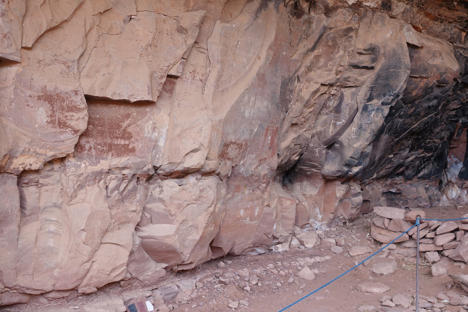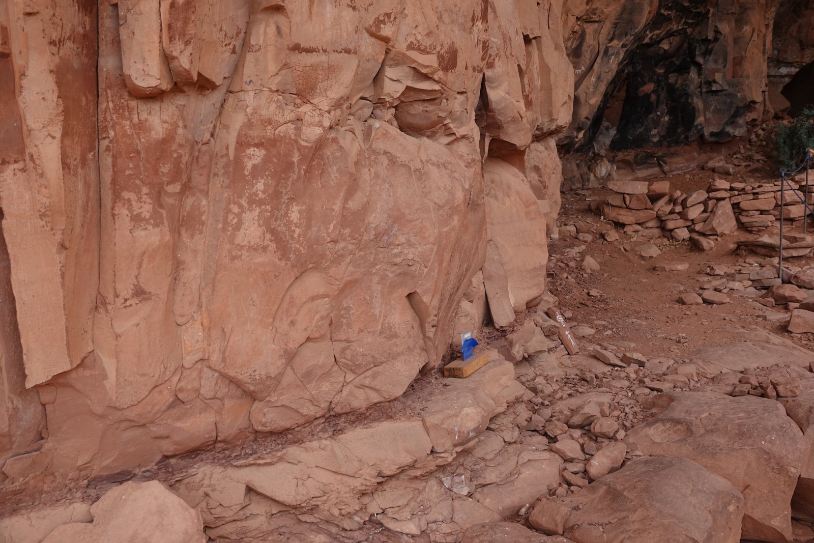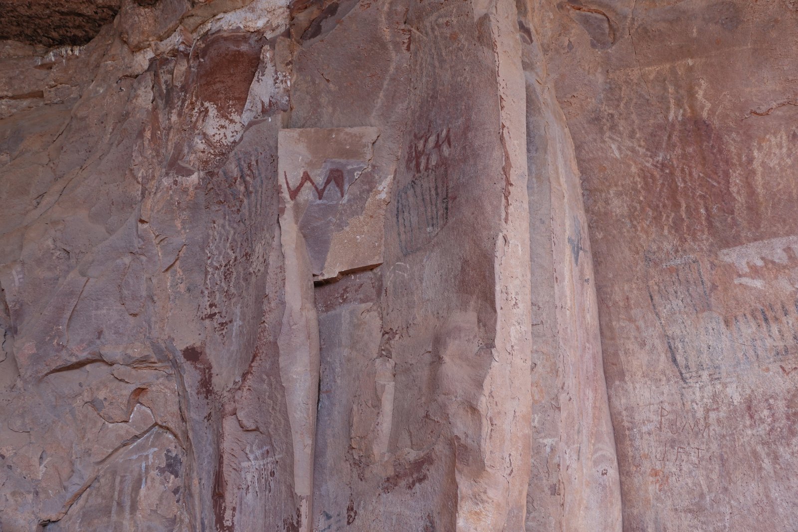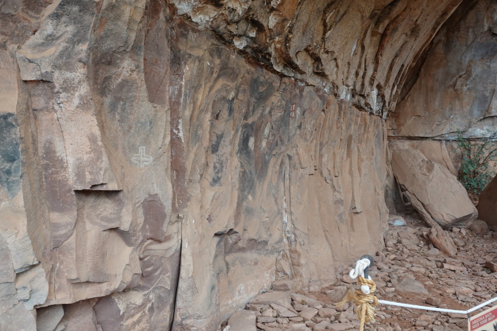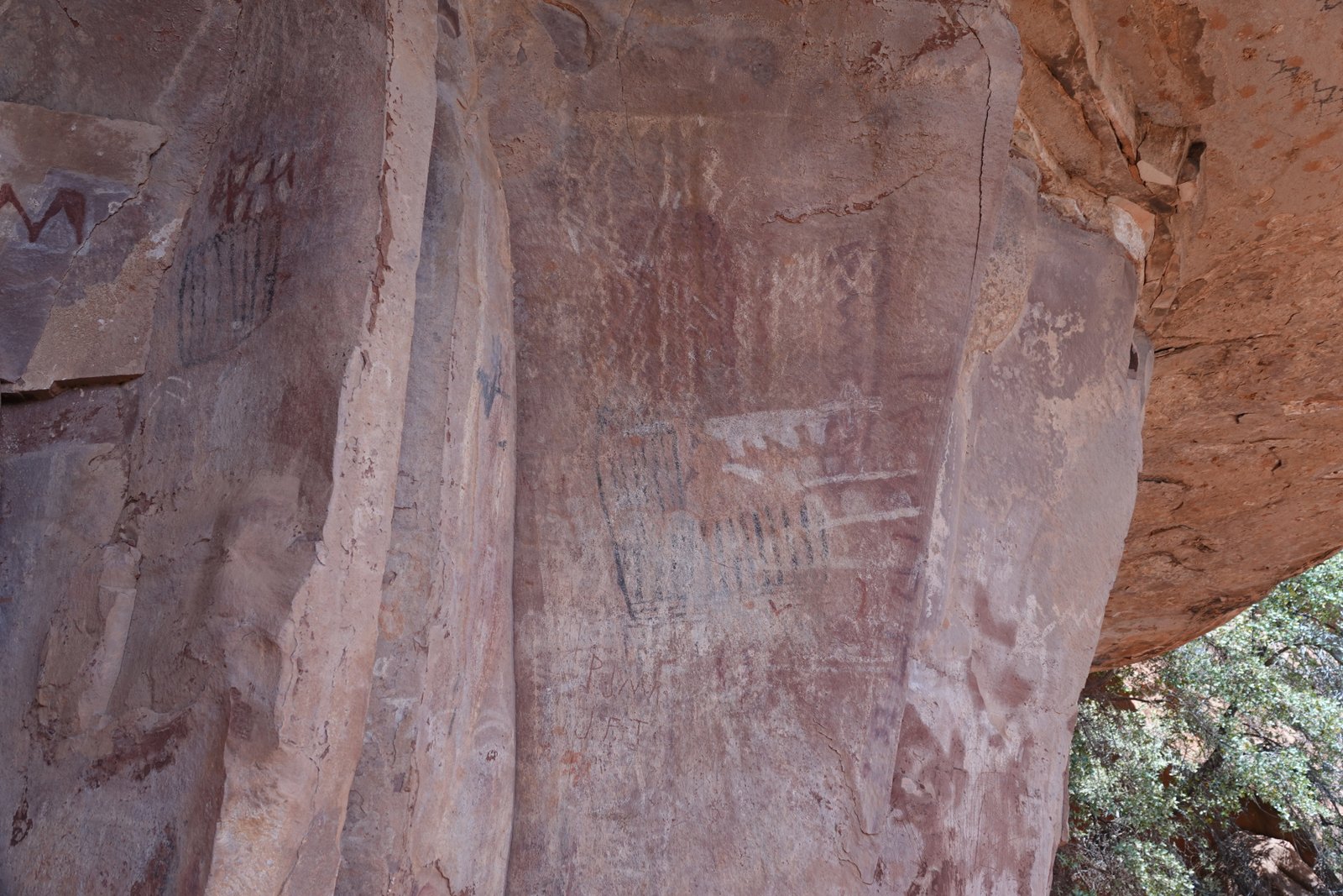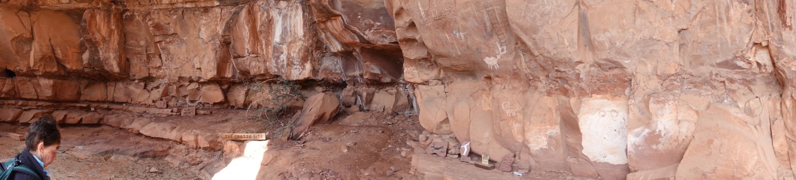 The Palatki Heritage Site is an archaeological site and park located in the Coconino National Forest, near Sedona, in Arizona, United States at approximately 34°54′56″N 111°54′08″W. In the Hopi language Palatki means 'red house'. Cliff dwellings The Palatki site has a set of ancient cliff dwellings in the red sandstone cliffs, built from 1100 to 1400 CE by the Sinagua people of the Ancestral Puebloans. The cliff dwellings were built under south-facing overhangs for shelter and winter sun. The Sinagua people planted crops and made pottery in the area.[1] Palatki and Honanki, another nearby archaeological site, had the largest cliff dwellings in the Red Rock formation area from 1150 to 1300 CE.[2] Palatki consists of two separate pueblos, suggesting two family or kin groups may have lived here, one in each pueblo. The circular shield-like pictographs above the eastern pueblo have been interpreted by some archaeologists as being a kin or clan symbol.[3] Rock art There are pictographs and petroglyphs at the Palatki site, including some that predate the cliff dwellings. Many of the pictographs on the rock walls are from the Sinagua. However, those created by peoples of the Archaic period in North America include some of the more abstract pictograph symbols and drawings that are 3,000 to 6,000 years old, and some of the petroglyphs, estimated to be 5,000 to 6,000 years old.[1] Archaeology Visitation to the site for over a century has caused degradation of the archaeological elements. It was begun by 19th century Euro-American settlers, with little archaeological awareness for the area. Photographs from the early 1900s show that an estimated 70 to 90 percent of the original structures have disappeared since then.