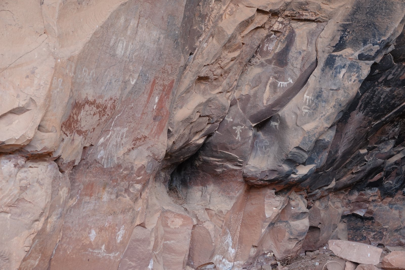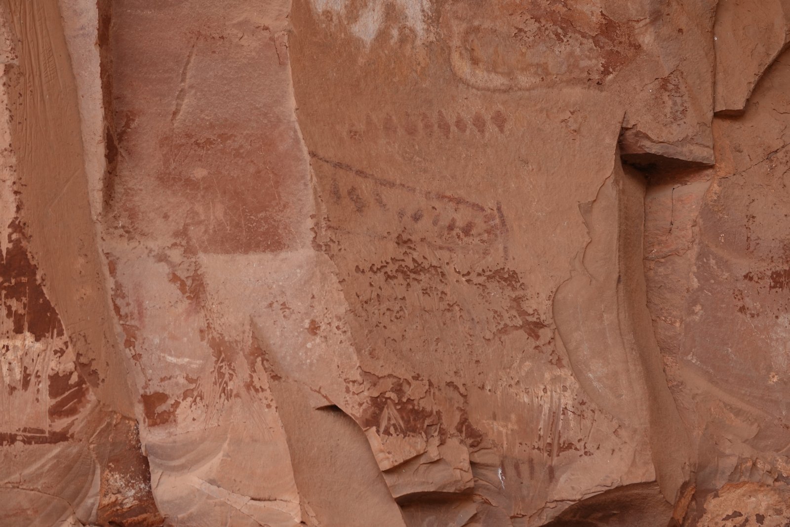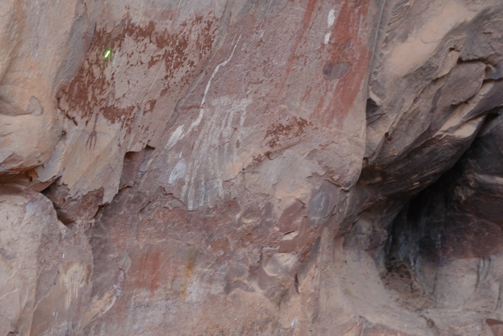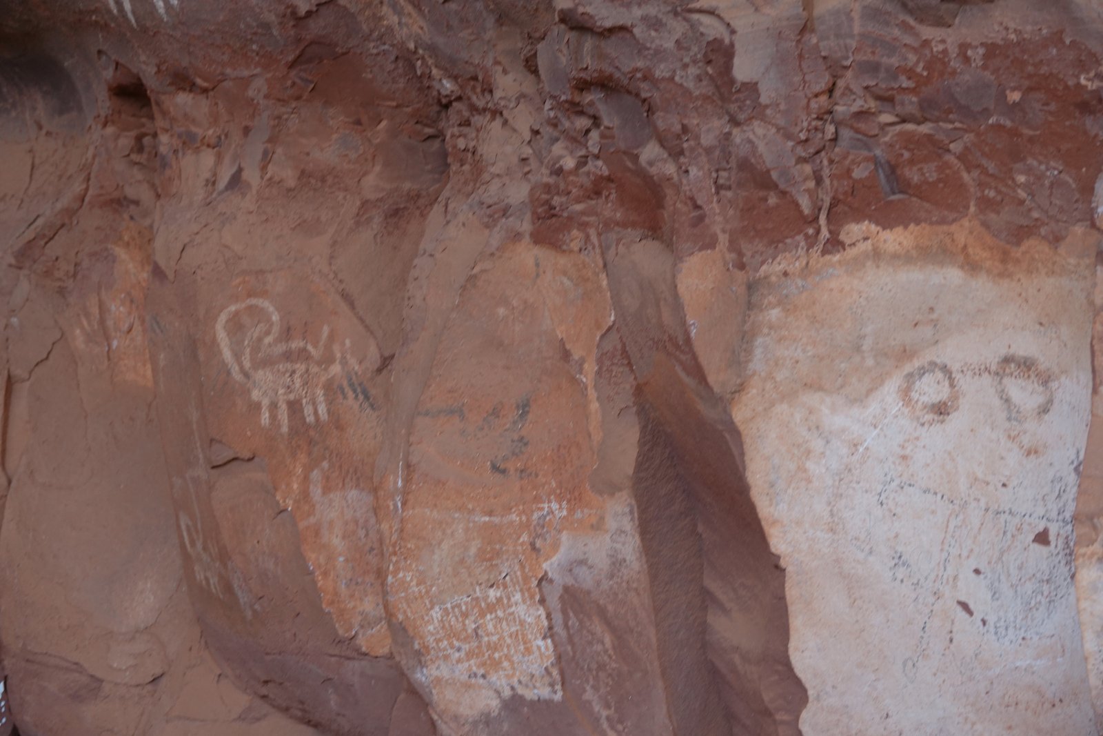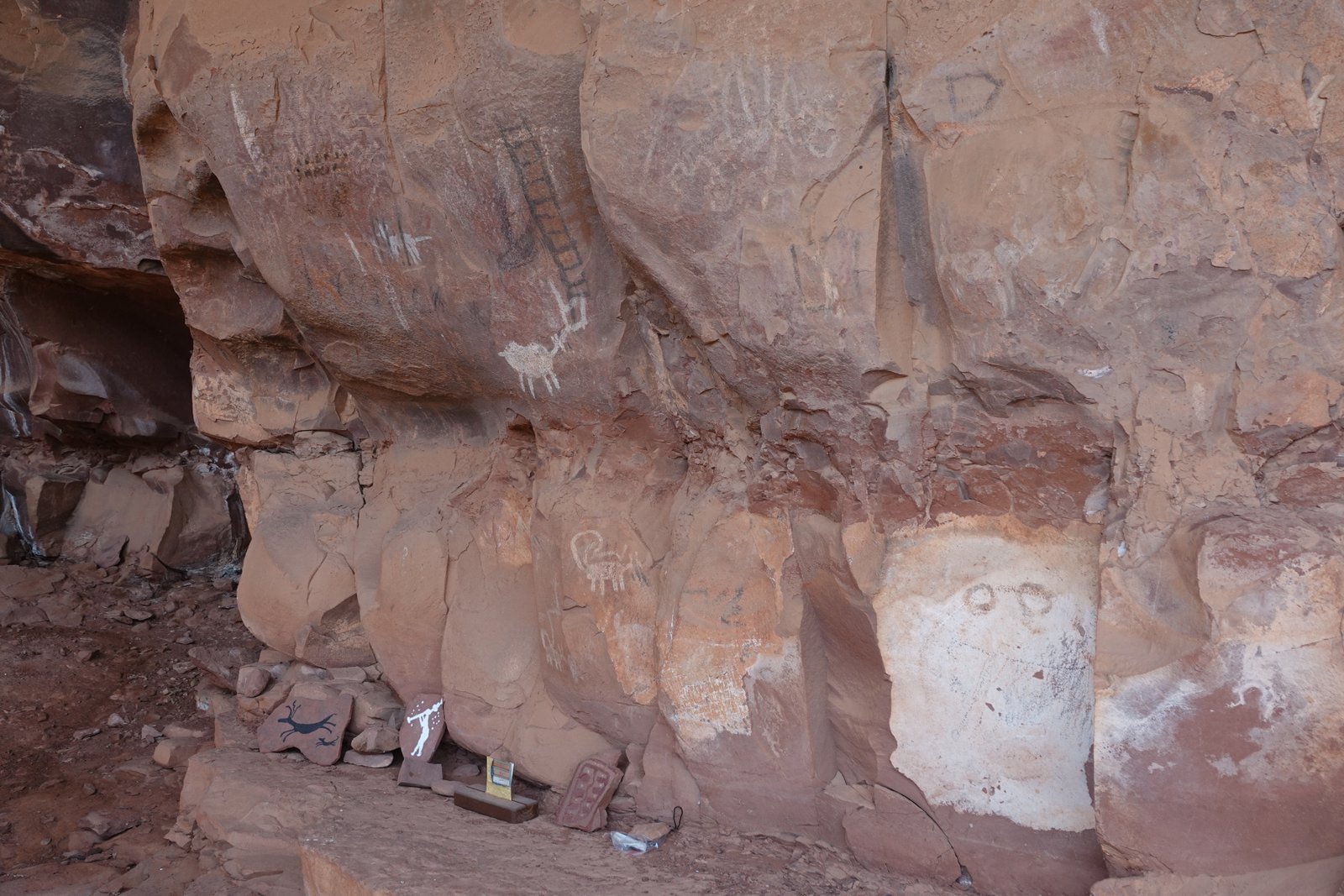 The Palatki Heritage Site is an archaeological site and park located in the Coconino National Forest, near Sedona, in Arizona, United States at approximately 34°54′56″N 111°54′08″W. In the Hopi language Palatki means 'red house'. Cliff dwellings The Palatki site has a set of ancient cliff dwellings in the red sandstone cliffs, built from 1100 to 1400 CE by the Sinagua people of the Ancestral Puebloans. The cliff dwellings were built under south-facing overhangs for shelter and winter sun. The Sinagua people planted crops and made pottery in the area.[1] Palatki and Honanki, another nearby archaeological site, had the largest cliff dwellings in the Red Rock formation area from 1150 to 1300 CE.[2] Palatki consists of two separate pueblos, suggesting two family or kin groups may have lived here, one in each pueblo. The circular shield-like pictographs above the eastern pueblo have been interpreted by some archaeologists as being a kin or clan symbol.[3] Rock art There are pictographs and petroglyphs at the Palatki site, including some that predate the cliff dwellings. Many of the pictographs on the rock walls are from the Sinagua. However, those created by peoples of the Archaic period in North America include some of the more abstract pictograph symbols and drawings that are 3,000 to 6,000 years old, and some of the petroglyphs, estimated to be 5,000 to 6,000 years old.[1] Archaeology Visitation to the site for over a century has caused degradation of the archaeological elements. It was begun by 19th century Euro-American settlers, with little archaeological awareness for the area. Photographs from the early 1900s show that an estimated 70 to 90 percent of the original structures have disappeared since then.