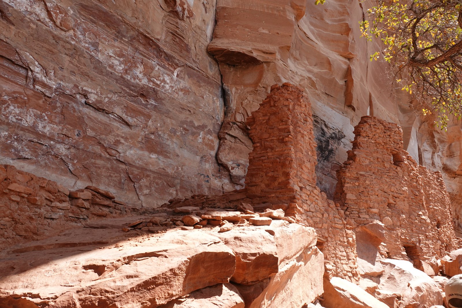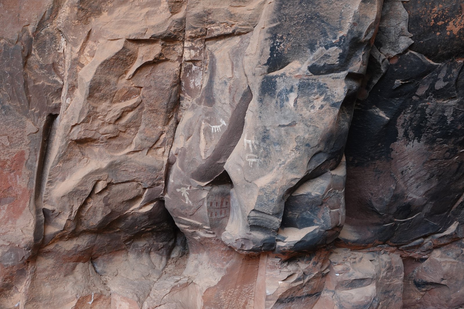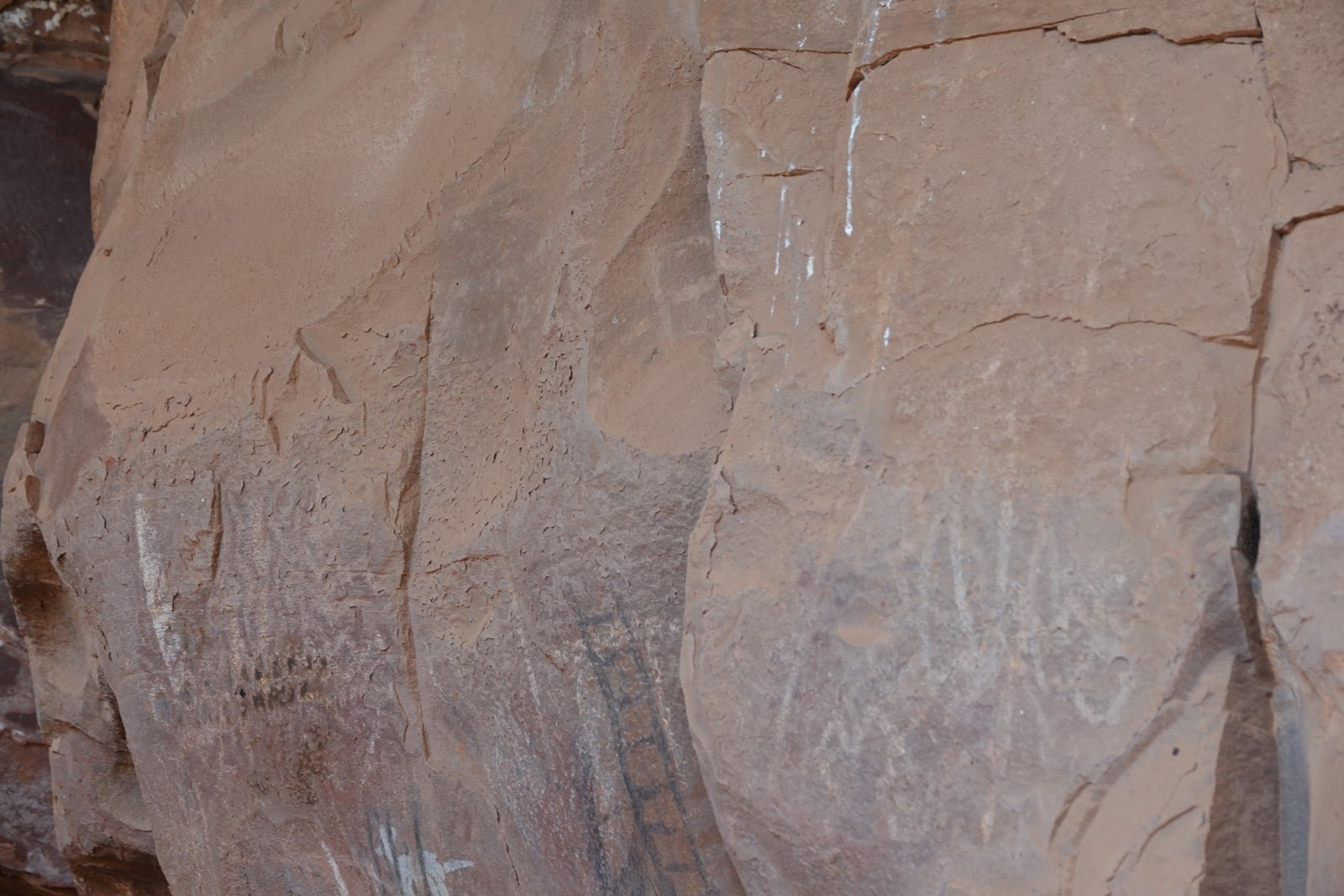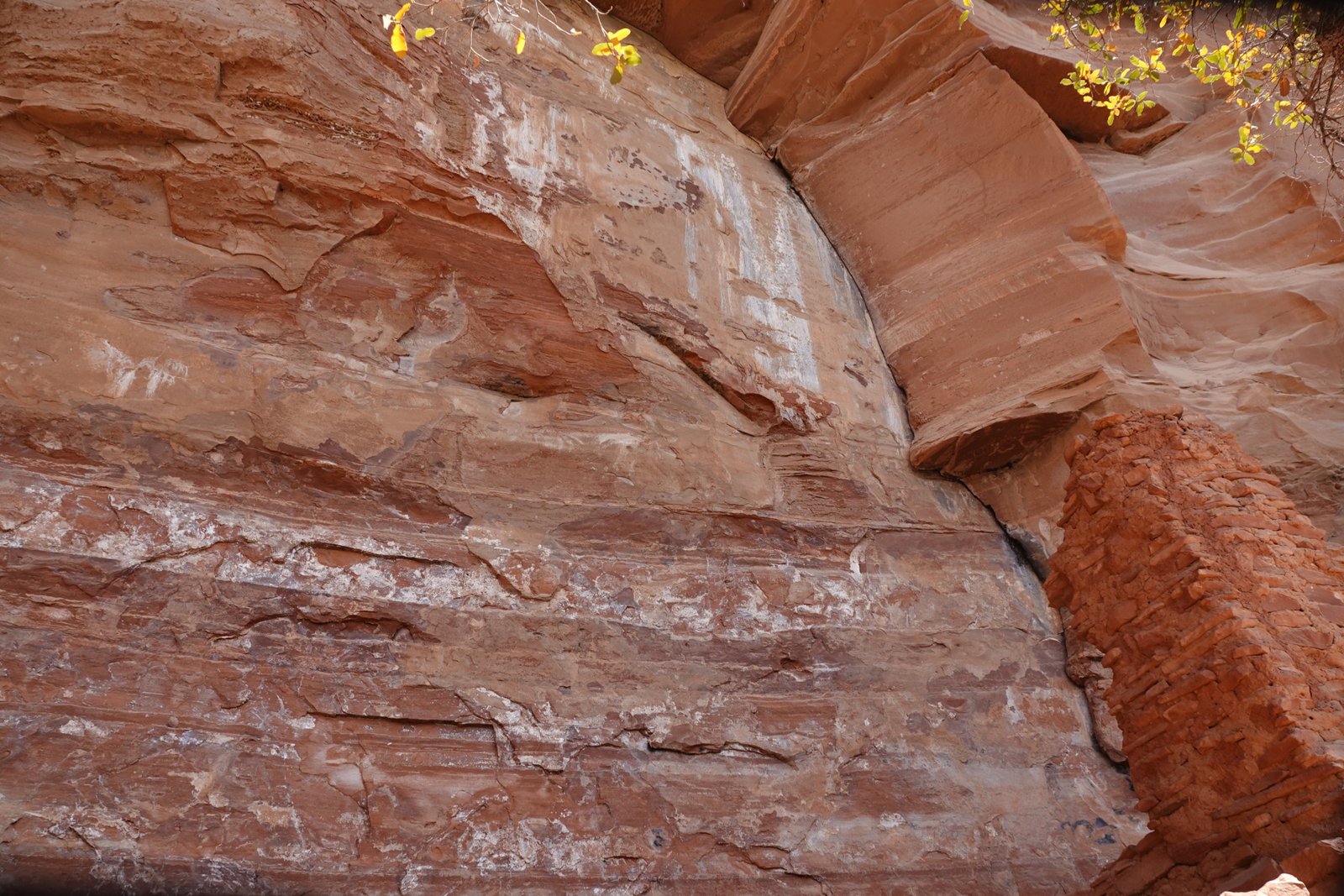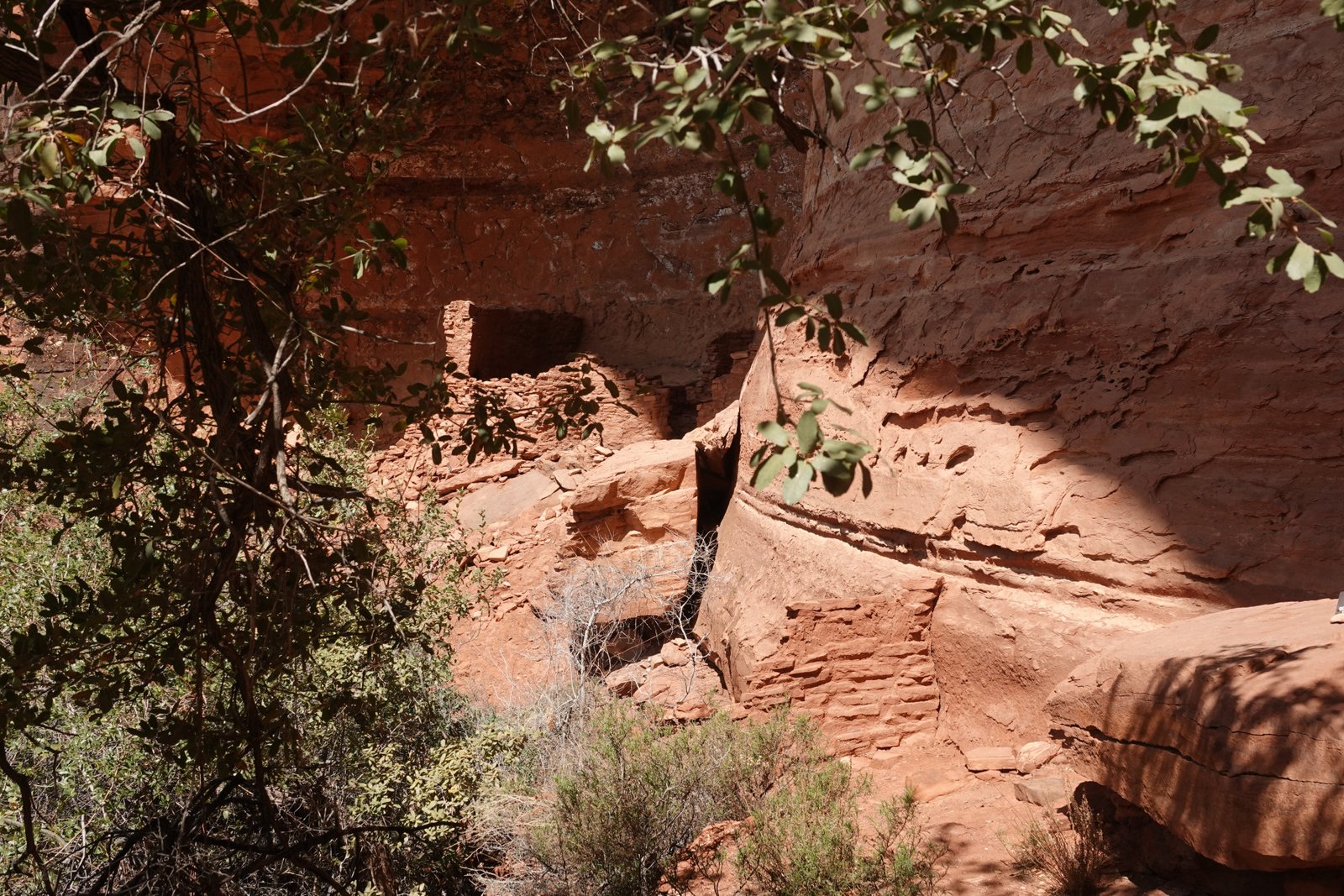 The Palatki Heritage Site is an archaeological site and park located in the Coconino National Forest, near Sedona, in Arizona, United States at approximately 34°54′56″N 111°54′08″W. In the Hopi language Palatki means 'red house'. Cliff dwellings The Palatki site has a set of ancient cliff dwellings in the red sandstone cliffs, built from 1100 to 1400 CE by the Sinagua people of the Ancestral Puebloans. The cliff dwellings were built under south-facing overhangs for shelter and winter sun. The Sinagua people planted crops and made pottery in the area.[1] Palatki and Honanki, another nearby archaeological site, had the largest cliff dwellings in the Red Rock formation area from 1150 to 1300 CE.[2] Palatki consists of two separate pueblos, suggesting two family or kin groups may have lived here, one in each pueblo. The circular shield-like pictographs above the eastern pueblo have been interpreted by some archaeologists as being a kin or clan symbol.[3] Rock art There are pictographs and petroglyphs at the Palatki site, including some that predate the cliff dwellings. Many of the pictographs on the rock walls are from the Sinagua. However, those created by peoples of the Archaic period in North America include some of the more abstract pictograph symbols and drawings that are 3,000 to 6,000 years old, and some of the petroglyphs, estimated to be 5,000 to 6,000 years old.[1] Archaeology Visitation to the site for over a century has caused degradation of the archaeological elements. It was begun by 19th century Euro-American settlers, with little archaeological awareness for the area. Photographs from the early 1900s show that an estimated 70 to 90 percent of the original structures have disappeared since then.