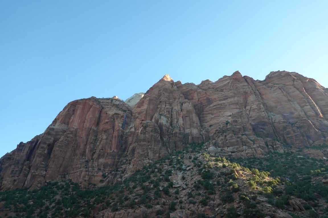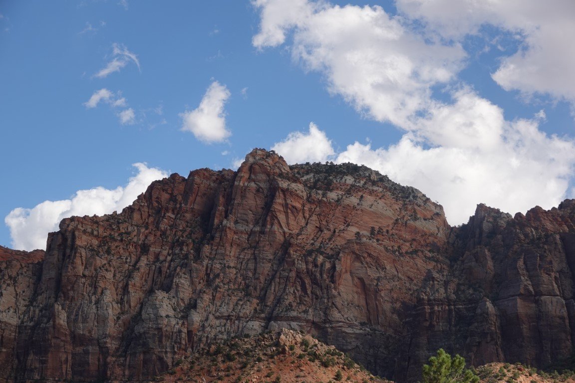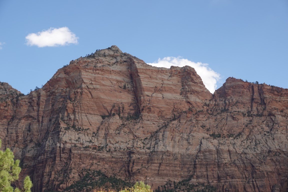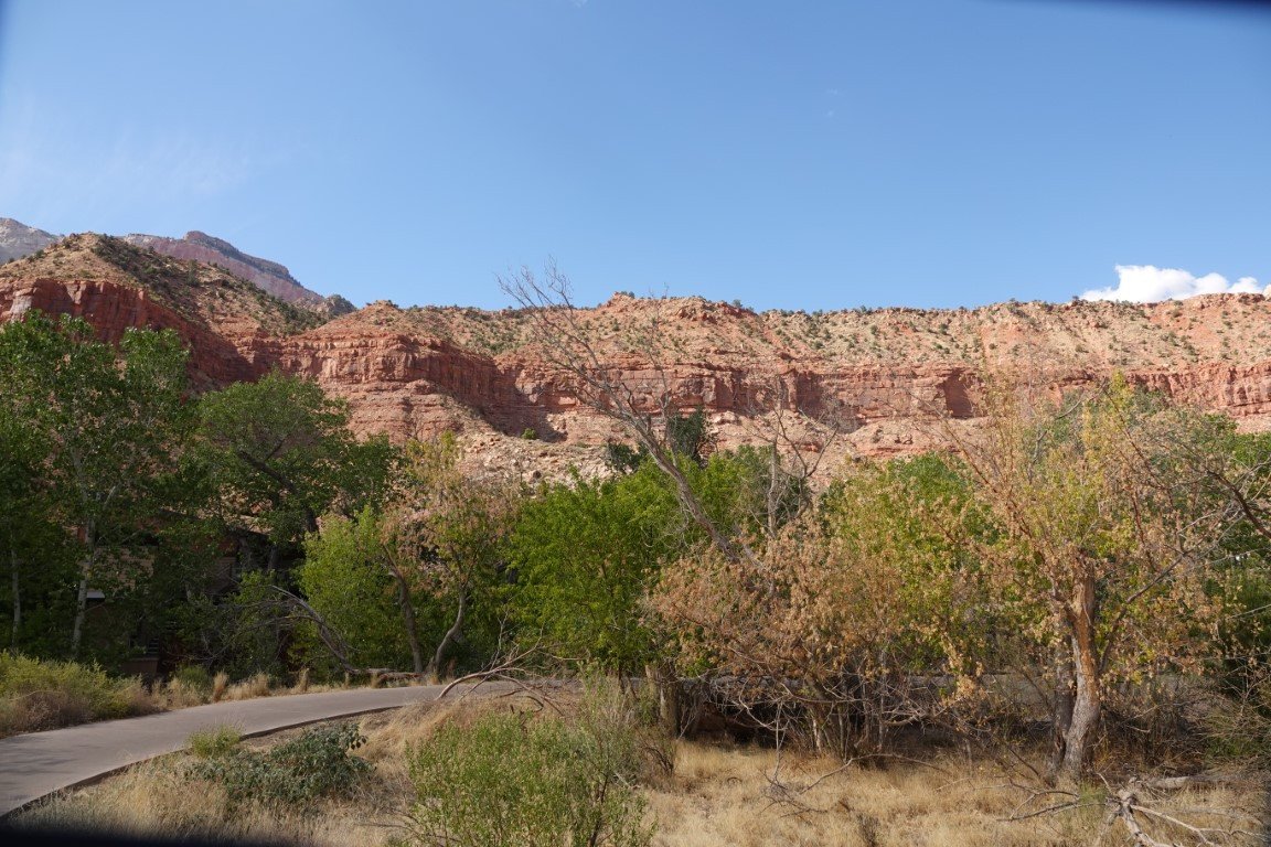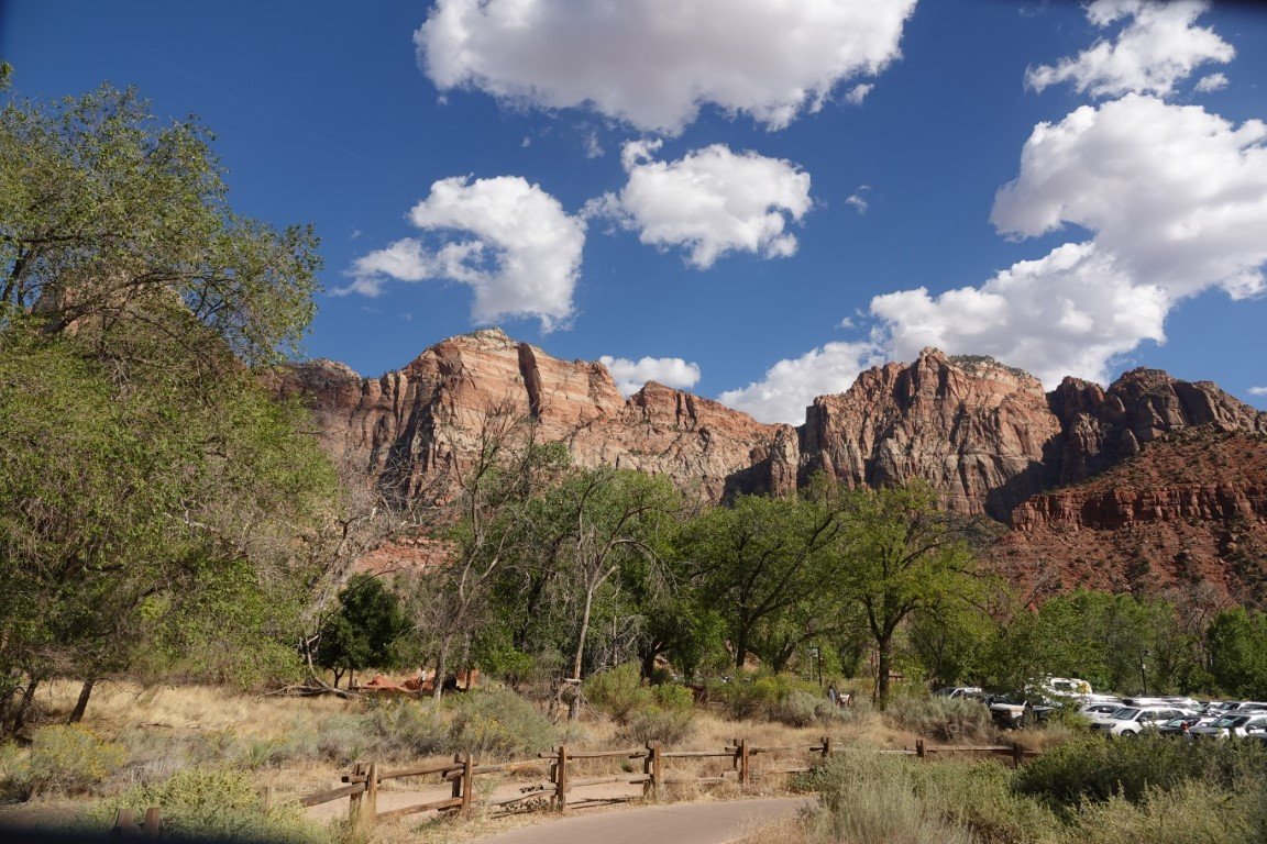 Zion National Park is a national park of the United States located in southwestern Utah near the town of Springdale. Located at the junction of the Colorado Plateau, Great Basin, and Mojave Desert regions, the park has a unique geography and a variety of life zones that allow for unusual plant and animal diversity. Numerous plant species as well as 289 species of birds, 75 mammals (including 19 species of bat), and 32 reptiles inhabit the park's four life zones: desert, riparian, woodland, and coniferous forest. Zion National Park includes mountains, canyons, buttes, mesas, monoliths, rivers, slot canyons, and natural arches. The lowest point in the park is 3,666 ft (1,117 m) at Coalpits Wash and the highest peak is 8,726 ft (2,660 m) at Horse Ranch Mountain. A prominent feature of the 229-square-mile (590 km2) park is Zion Canyon, which is 15 miles (24 km) long and up to 2,640 ft (800 m) deep. The canyon walls are reddish and tan-colored Navajo Sandstone eroded by the North Fork of the Virgin River. The park attracted 5 million visitors in 2023.