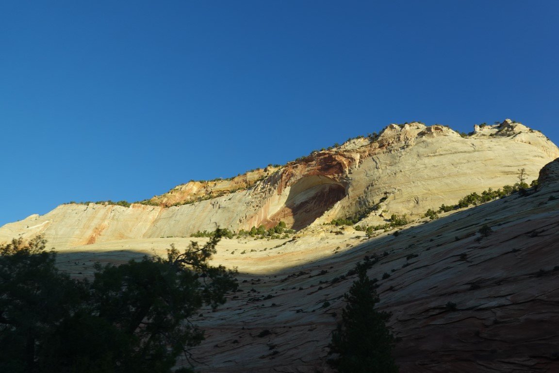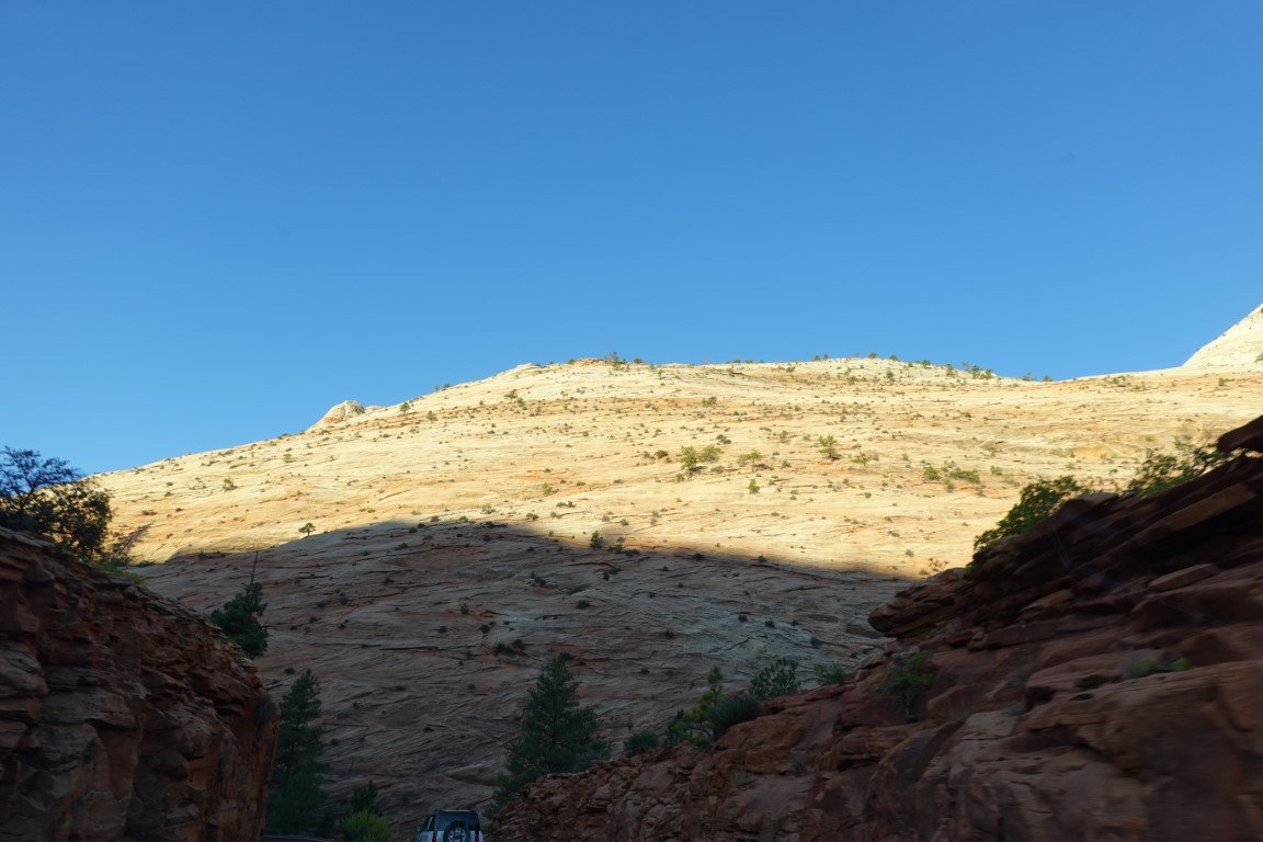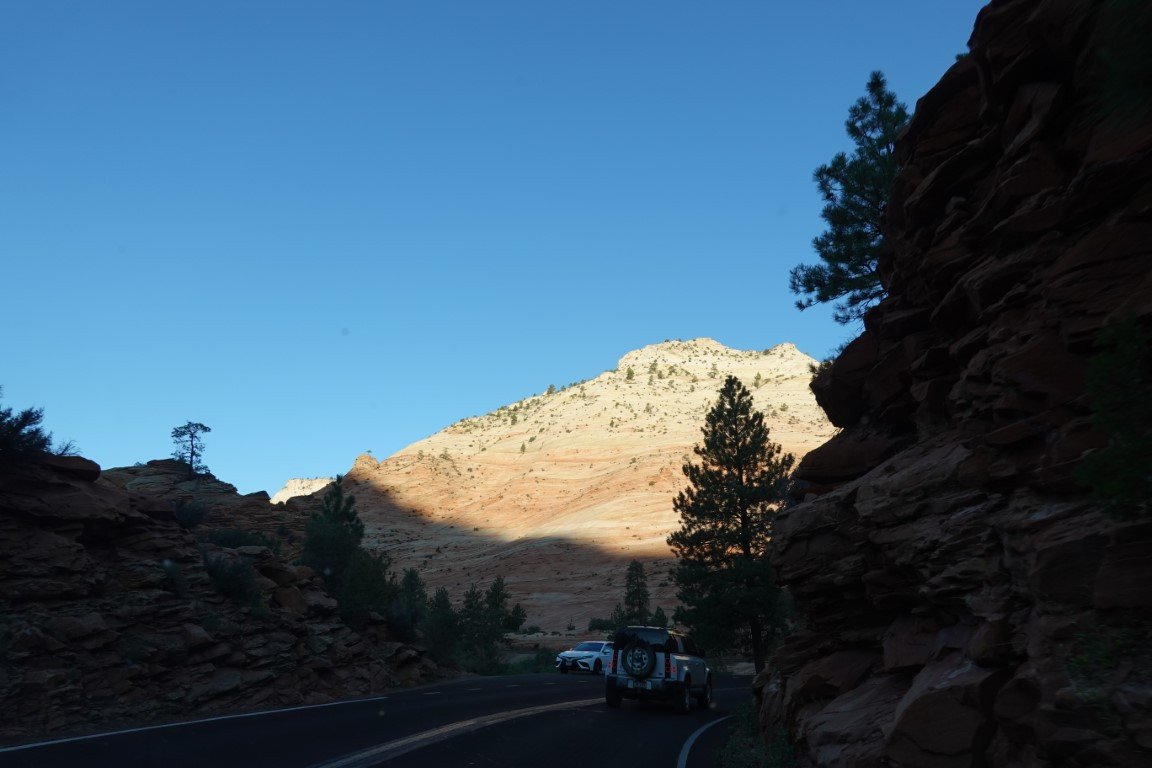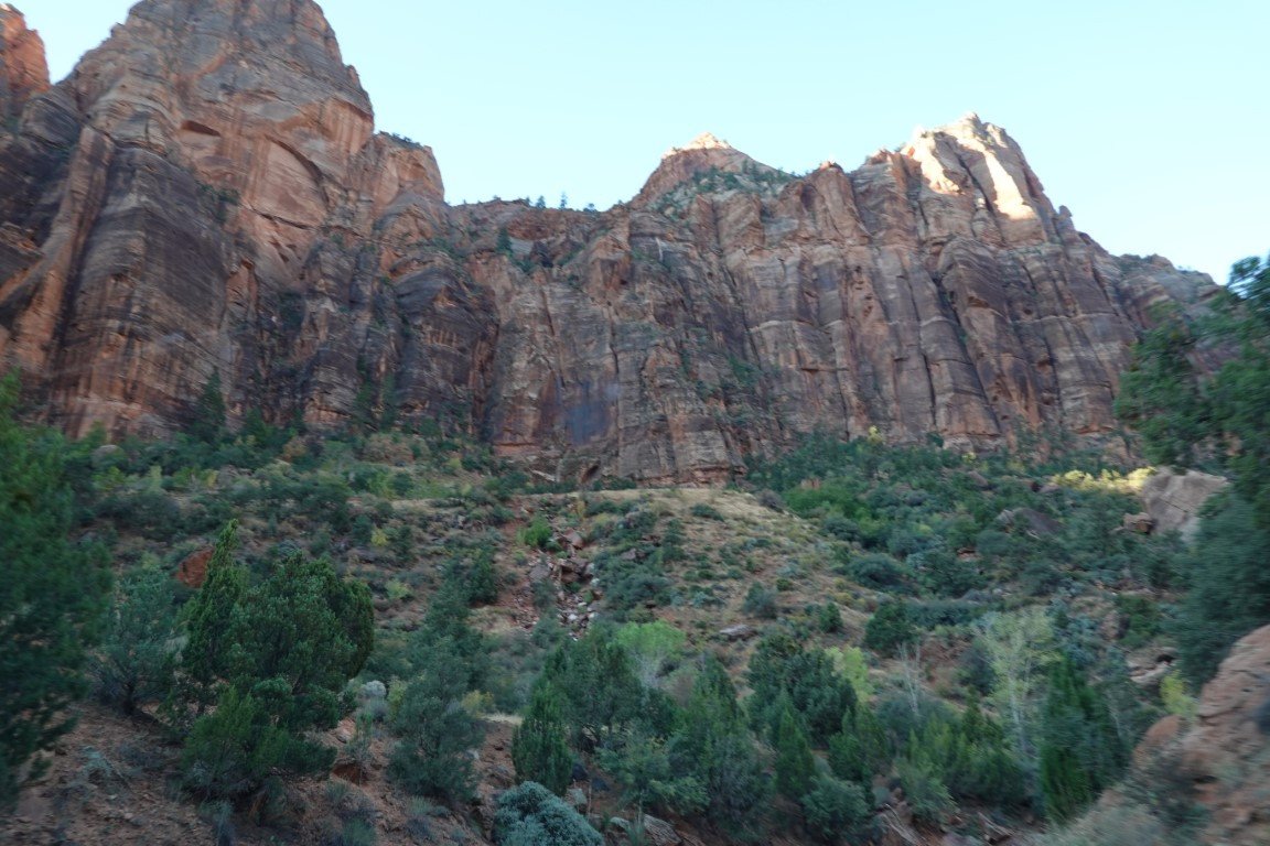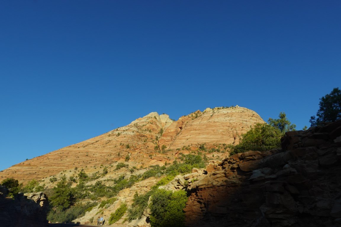 Zion National Park is a national park of the United States located in southwestern Utah near the town of Springdale. Located at the junction of the Colorado Plateau, Great Basin, and Mojave Desert regions, the park has a unique geography and a variety of life zones that allow for unusual plant and animal diversity. Numerous plant species as well as 289 species of birds, 75 mammals (including 19 species of bat), and 32 reptiles inhabit the park's four life zones: desert, riparian, woodland, and coniferous forest. Zion National Park includes mountains, canyons, buttes, mesas, monoliths, rivers, slot canyons, and natural arches. The lowest point in the park is 3,666 ft (1,117 m) at Coalpits Wash and the highest peak is 8,726 ft (2,660 m) at Horse Ranch Mountain. A prominent feature of the 229-square-mile (590 km2) park is Zion Canyon, which is 15 miles (24 km) long and up to 2,640 ft (800 m) deep. The canyon walls are reddish and tan-colored Navajo Sandstone eroded by the North Fork of the Virgin River. The park attracted 5 million visitors in 2023.