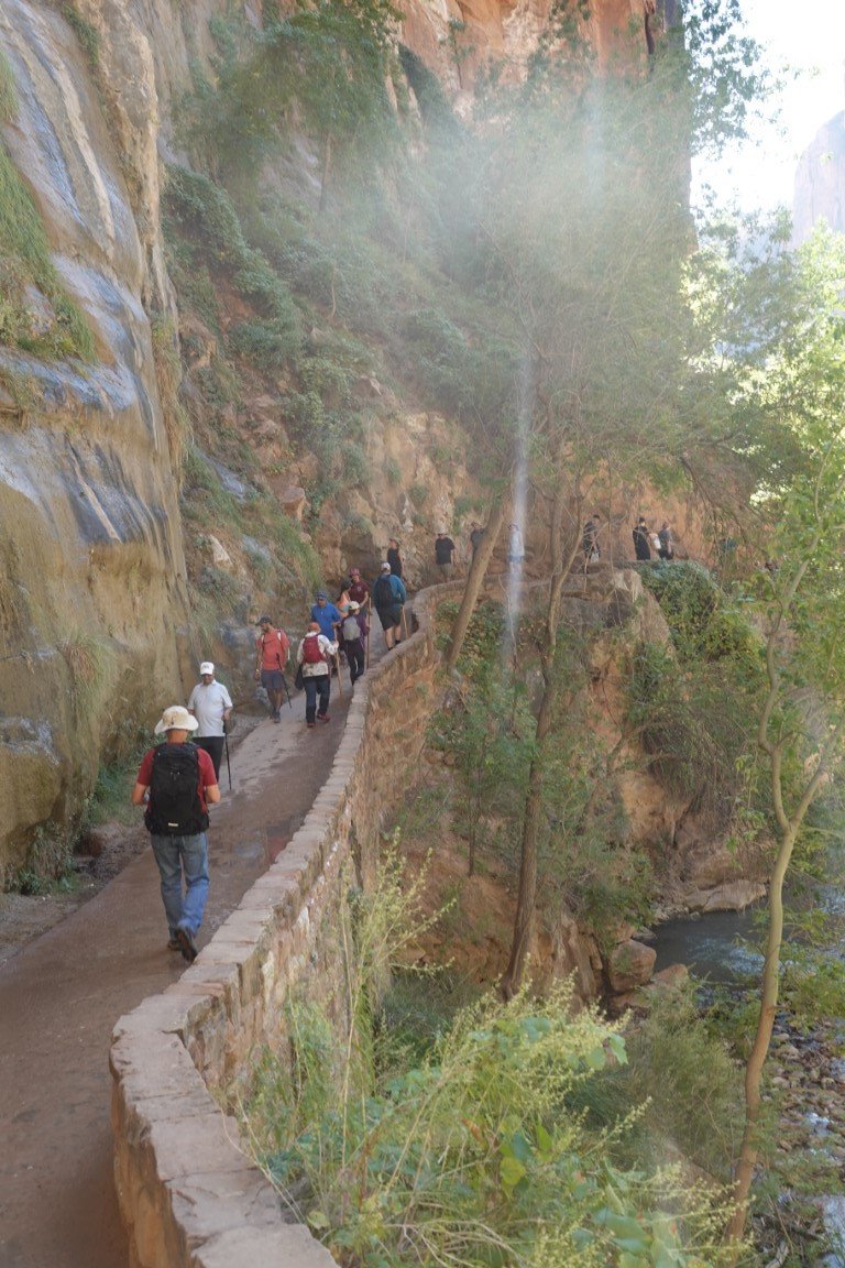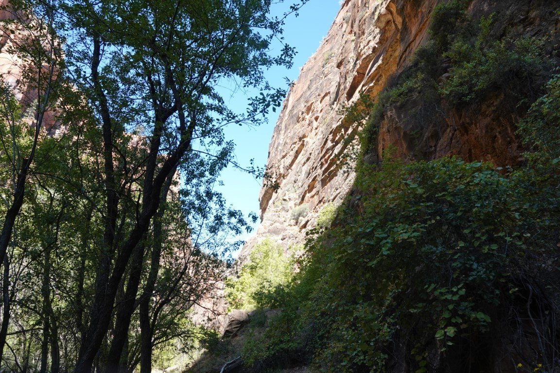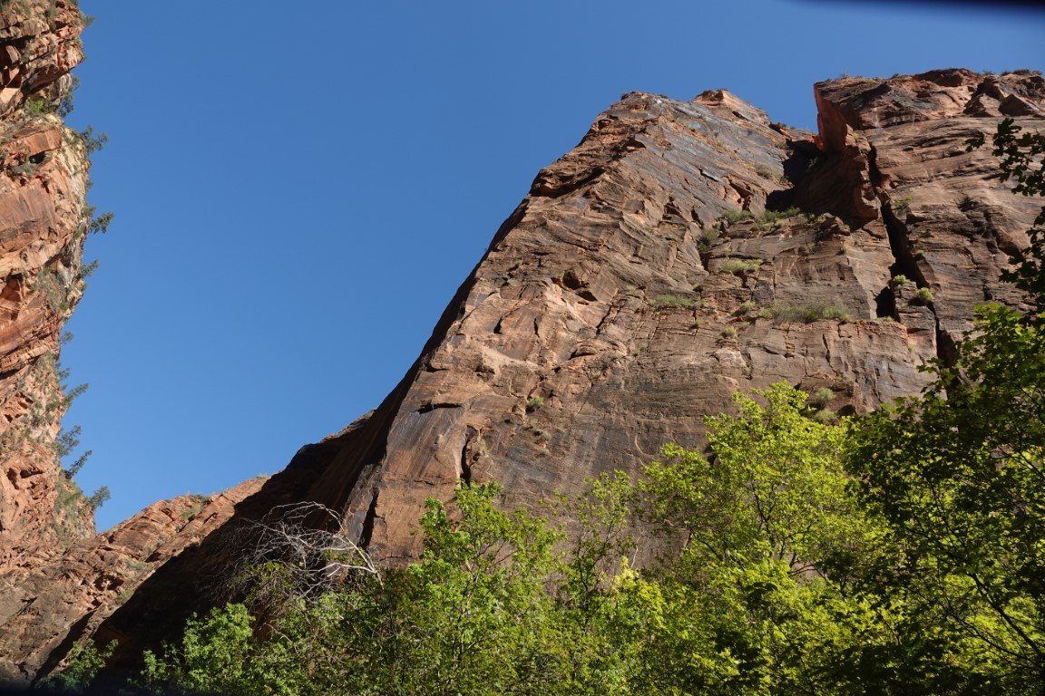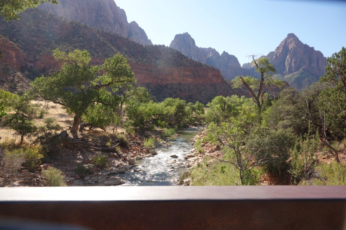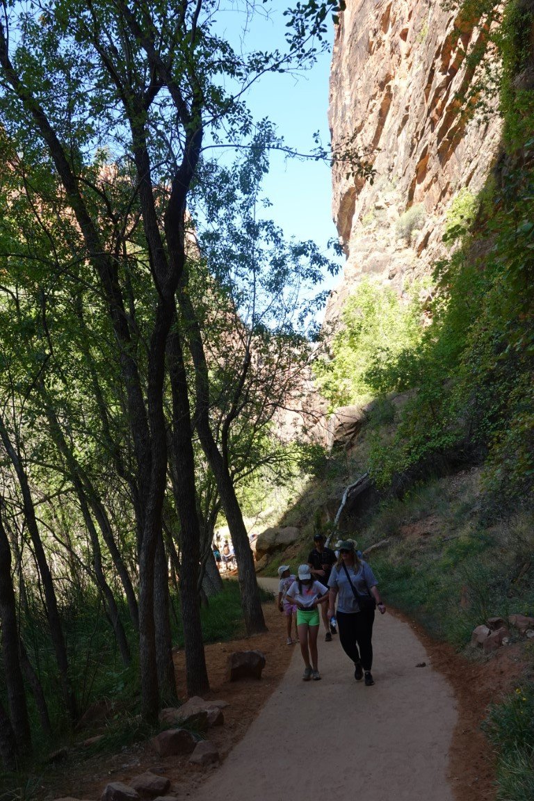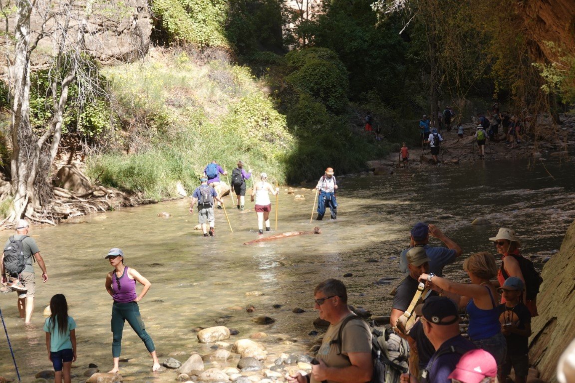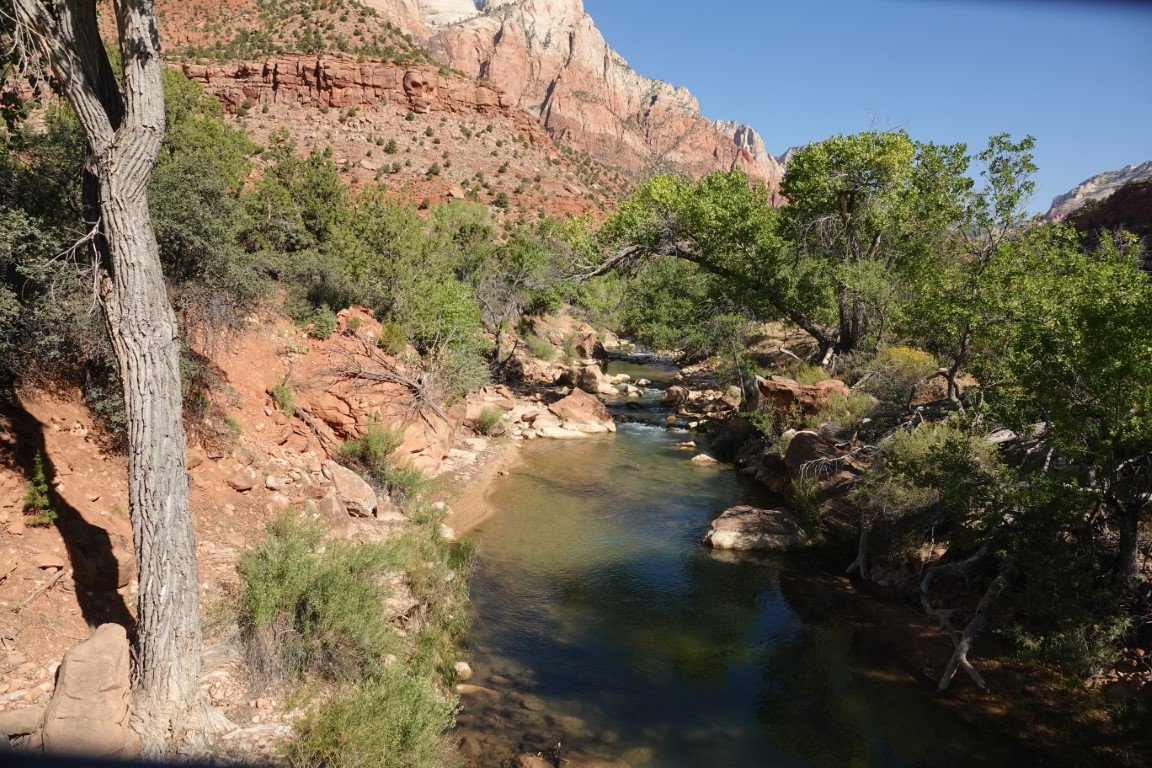 Zion National Park is a national park of the United States located in southwestern Utah near the town of Springdale. Located at the junction of the Colorado Plateau, Great Basin, and Mojave Desert regions, the park has a unique geography and a variety of life zones that allow for unusual plant and animal diversity. Numerous plant species as well as 289 species of birds, 75 mammals (including 19 species of bat), and 32 reptiles inhabit the park's four life zones: desert, riparian, woodland, and coniferous forest. Zion National Park includes mountains, canyons, buttes, mesas, monoliths, rivers, slot canyons, and natural arches. The lowest point in the park is 3,666 ft (1,117 m) at Coalpits Wash and the highest peak is 8,726 ft (2,660 m) at Horse Ranch Mountain. A prominent feature of the 229-square-mile (590 km2) park is Zion Canyon, which is 15 miles (24 km) long and up to 2,640 ft (800 m) deep. The canyon walls are reddish and tan-colored Navajo Sandstone eroded by the North Fork of the Virgin River. The park attracted 5 million visitors in 2023.