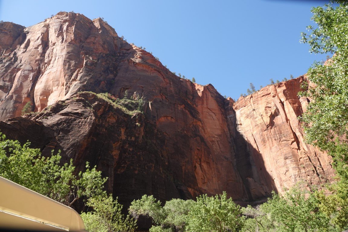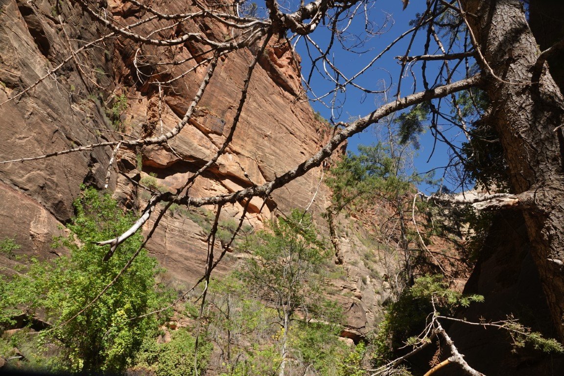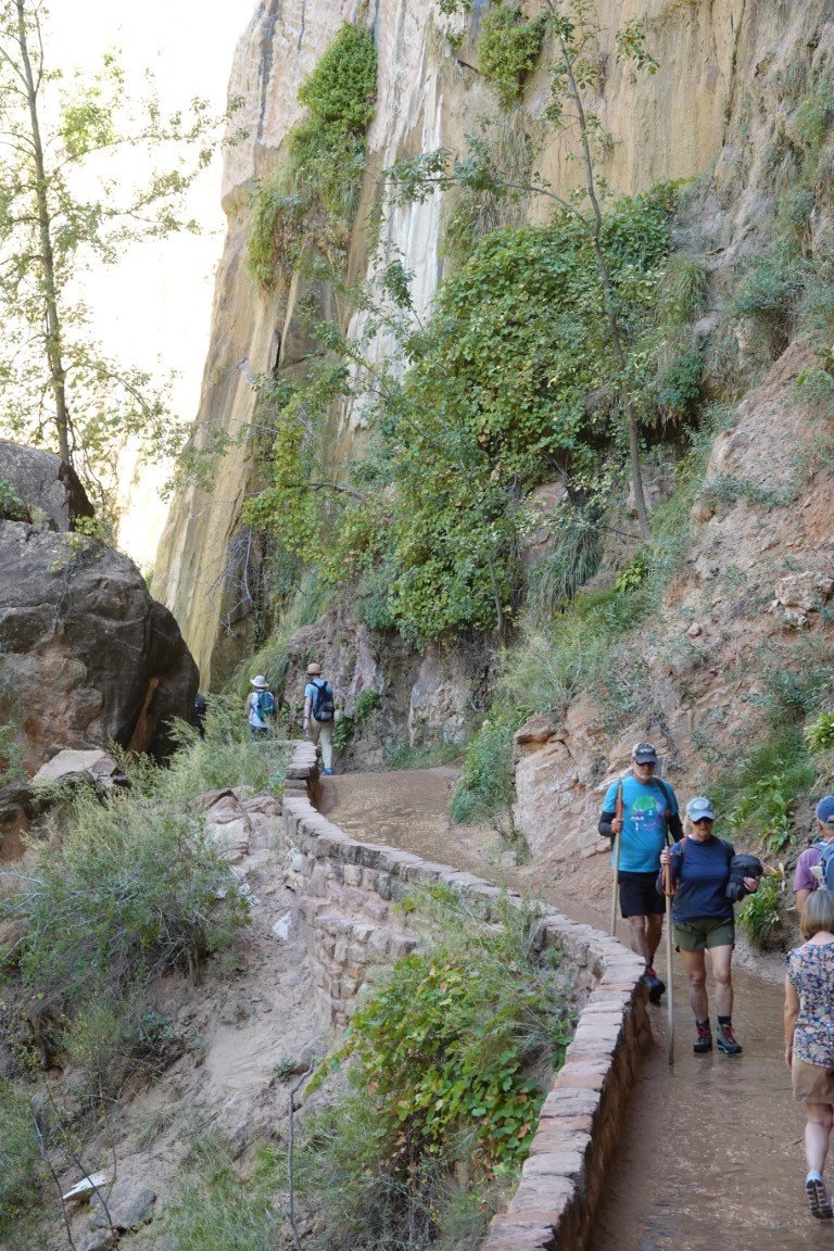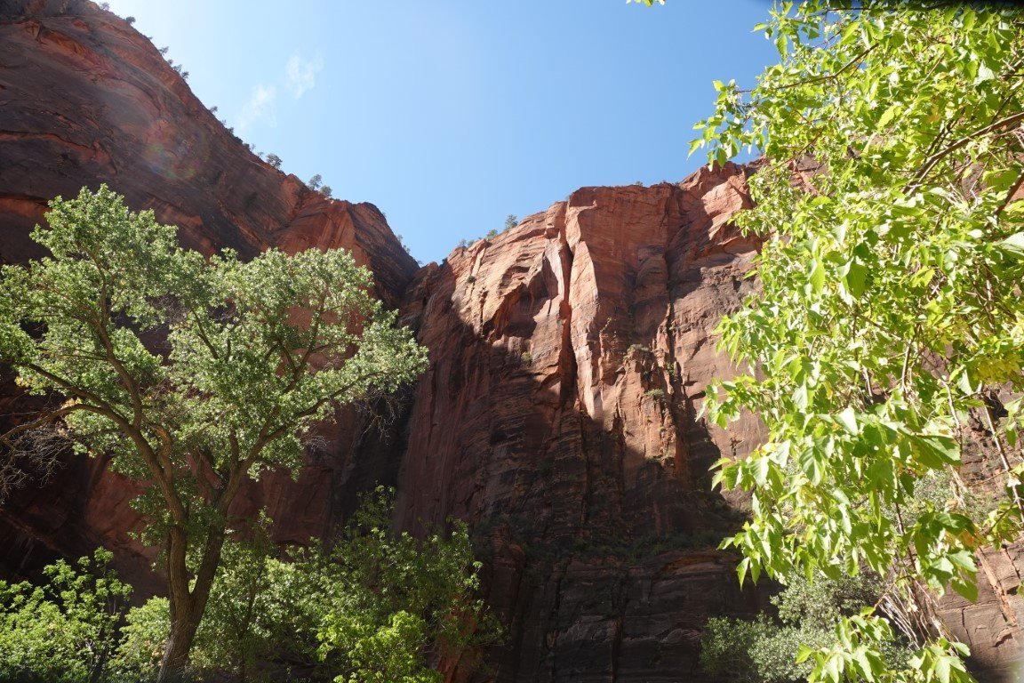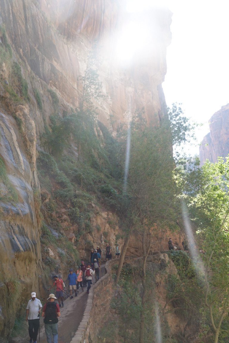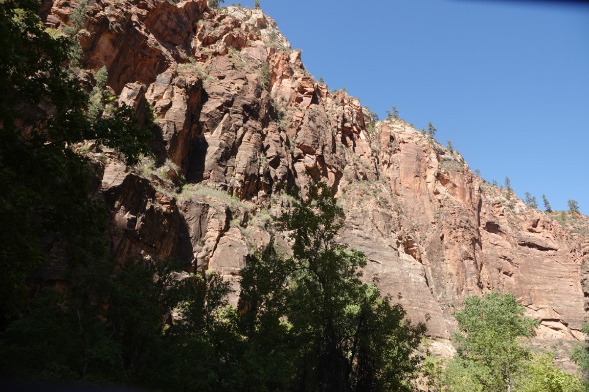 Zion National Park is a national park of the United States located in southwestern Utah near the town of Springdale. Located at the junction of the Colorado Plateau, Great Basin, and Mojave Desert regions, the park has a unique geography and a variety of life zones that allow for unusual plant and animal diversity. Numerous plant species as well as 289 species of birds, 75 mammals (including 19 species of bat), and 32 reptiles inhabit the park's four life zones: desert, riparian, woodland, and coniferous forest. Zion National Park includes mountains, canyons, buttes, mesas, monoliths, rivers, slot canyons, and natural arches. The lowest point in the park is 3,666 ft (1,117 m) at Coalpits Wash and the highest peak is 8,726 ft (2,660 m) at Horse Ranch Mountain. A prominent feature of the 229-square-mile (590 km2) park is Zion Canyon, which is 15 miles (24 km) long and up to 2,640 ft (800 m) deep. The canyon walls are reddish and tan-colored Navajo Sandstone eroded by the North Fork of the Virgin River. The park attracted 5 million visitors in 2023.
